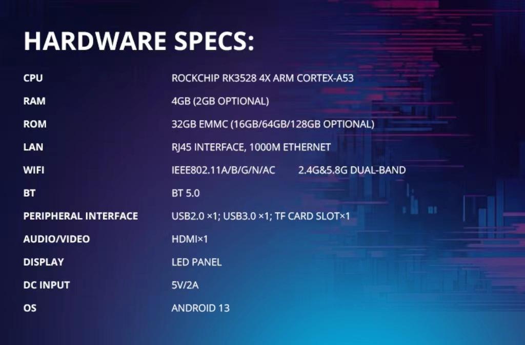 | UPC | RK3528, ARM Cortex-A53 de cuatro núcleos | ||||