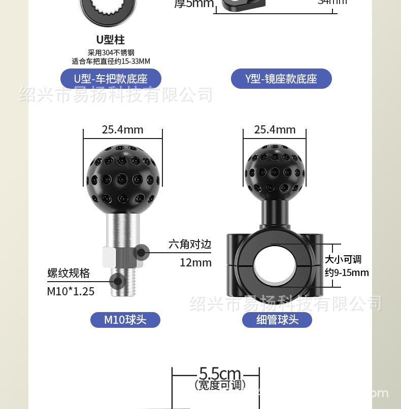 15-35mm bracket handlebar installation version, Rearview mirror mount installation, 8-14mm diameter thin rod i...