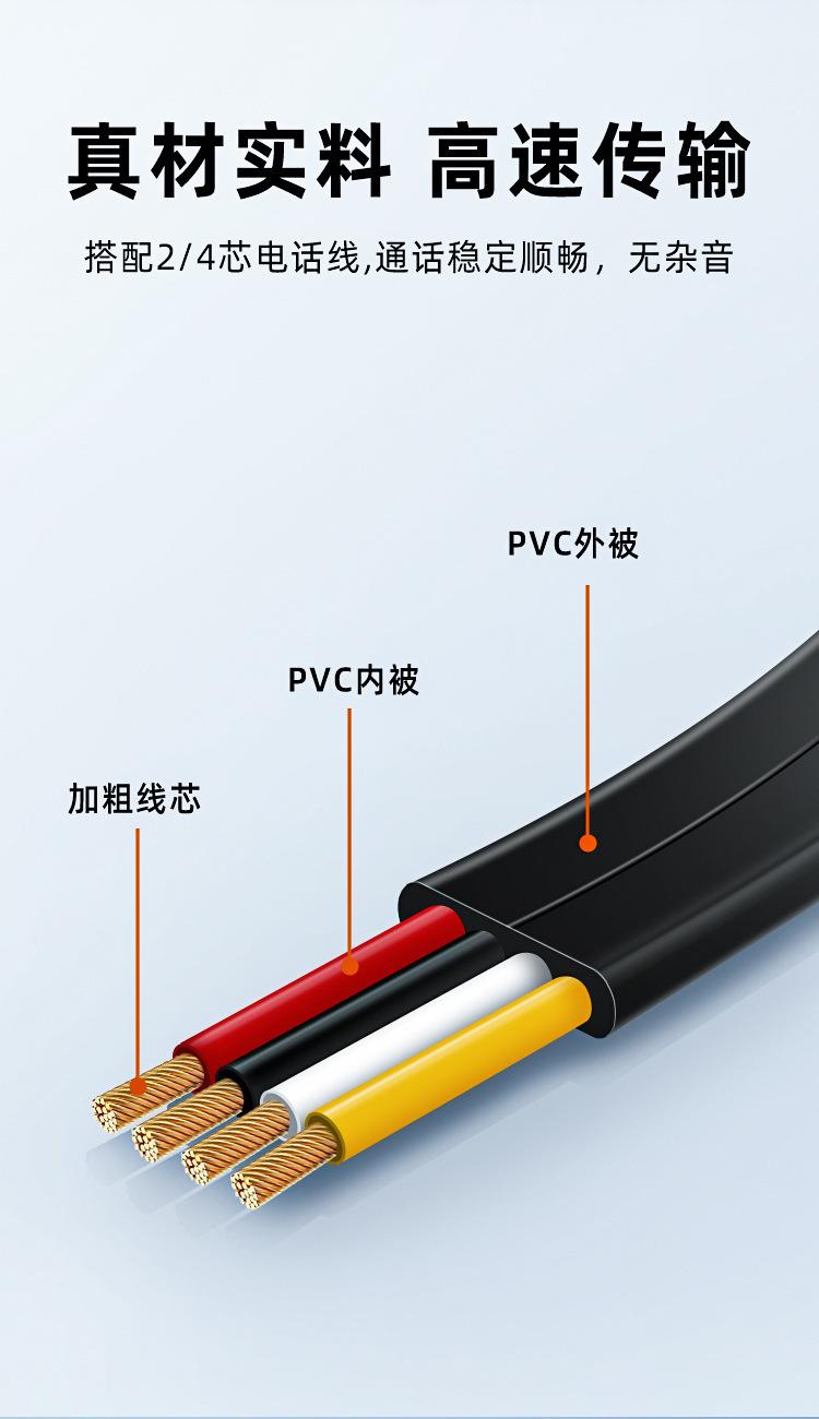 Black 6p2c crystal head telephone cable (white and yellow core wire) 12m with 12 cable management buckles