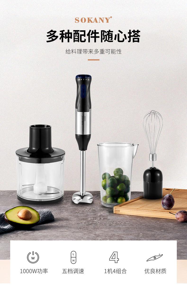 Batidora de huevos eléctrica doméstica multifunción SOKANY1711-4 para frutas y alimentos complementarios, trituradora 4 en 1
