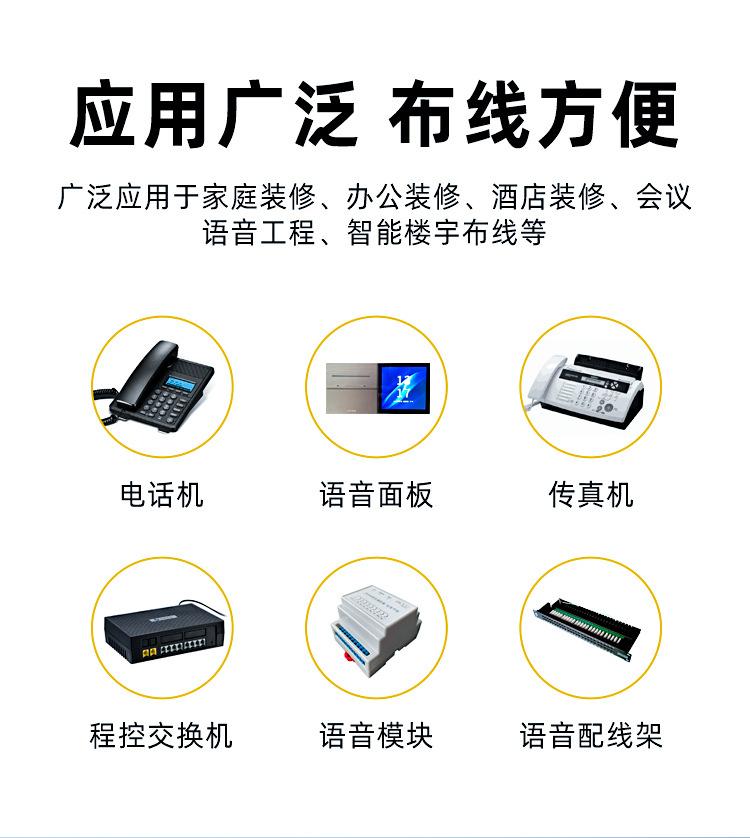 Black 6p2c crystal head telephone cable (white and yellow core wire) 12m with 12 cable management buckles