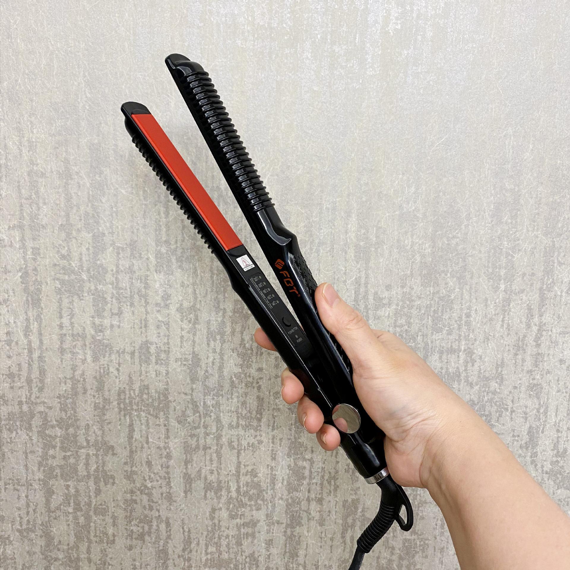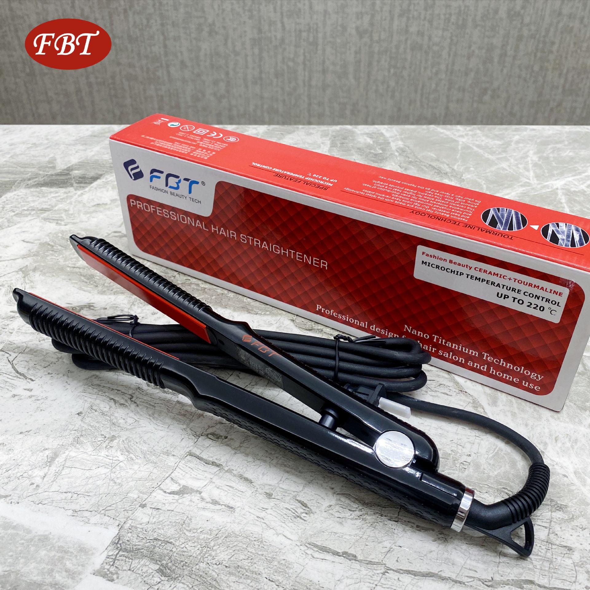 FBT - Placa de cerámica roja, rollo recto, férula eléctrica de doble propósito, no daña el cabello, hebilla interior esponjosa natural, rollo de ondas grandes, venta al por mayor