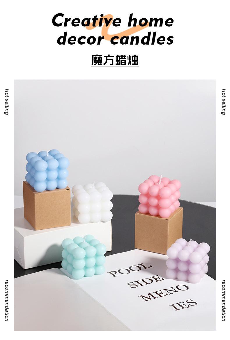 Vela de aromaterapia con forma de cubo de Rubik transfronterizo, venta al por mayor, adornos sencillos para el hogar, estilo burbuja roja, fragancia de regalo.