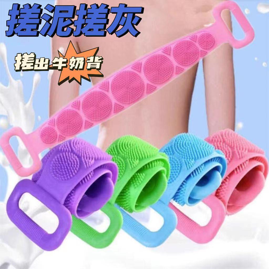 Toalla de baño de silicona fuerte Baño frotar la espalda frotar barro gris unisex largo espalda doble cara toalla de baño de silicona