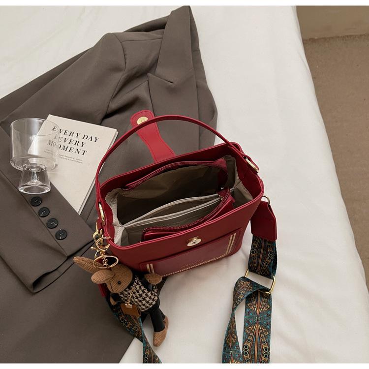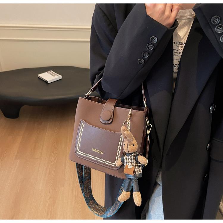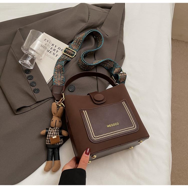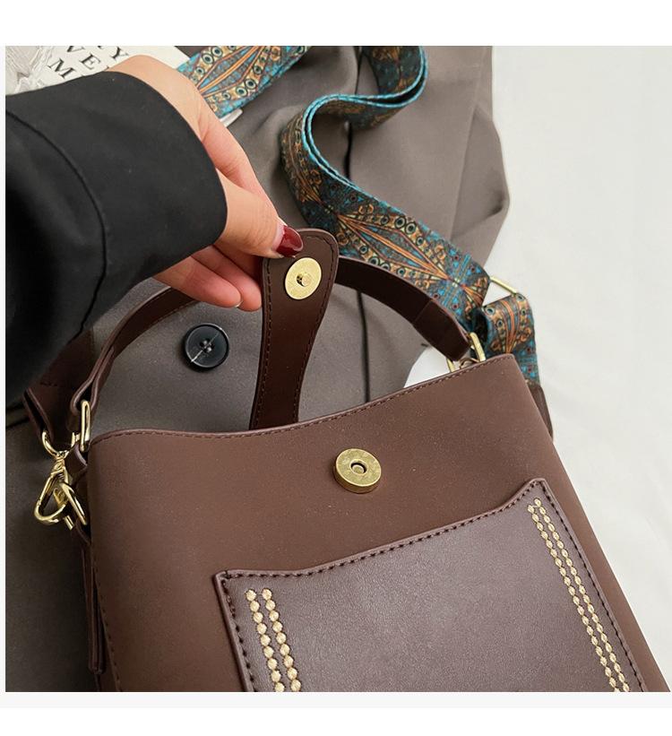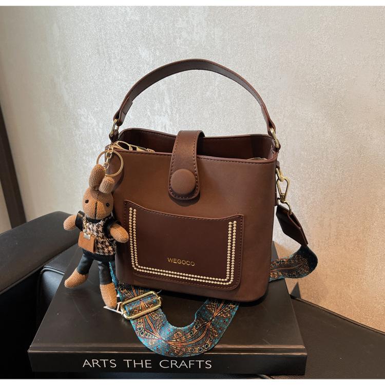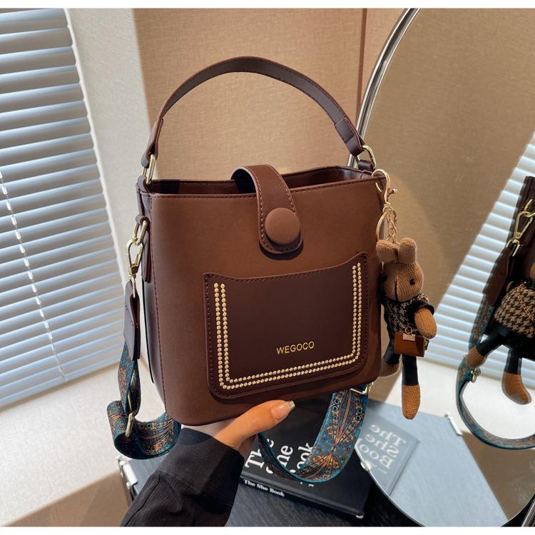 Bolsos de Alta Gama para Mujer 2025 Nuevo Estilo Coreano Moda Mate Bolso Bandolera de Hombro Nicho Bandolera de Banda Ancha Bolso Satchel Bolso Balde