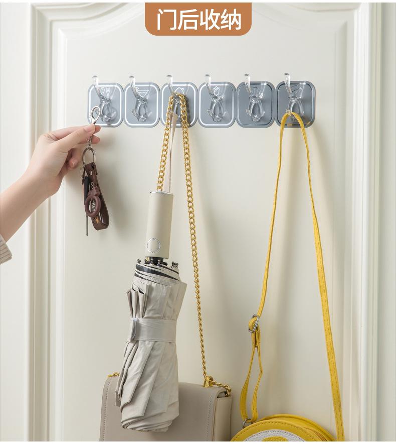 Gancho adhesivo fuerte sin perforaciones para colgar ropa, toallas, cocina, transparente, sin costuras, con fila de ganchos adhesivos