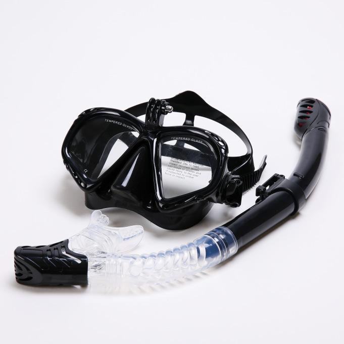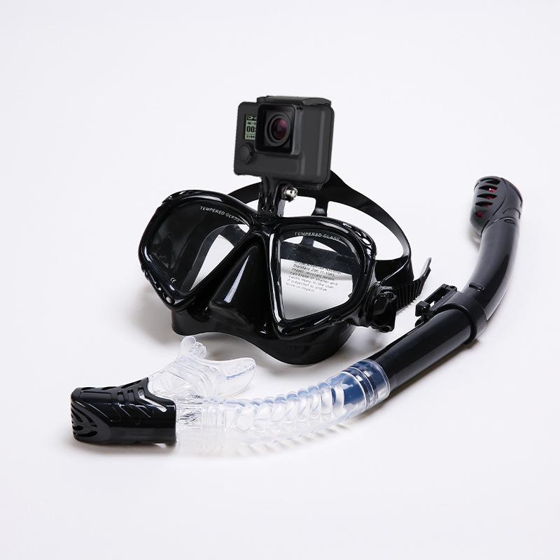Gafas de buceo de silicona de vidrio templado gopro para adultos, nuevo set de snorkel de esnórquel completamente seco con soporte