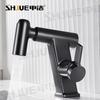 Grifo de cascada de cobre negro simple para baño, lavabo, grifo de agua fría y caliente para el hogar, grifo de un solo orificio