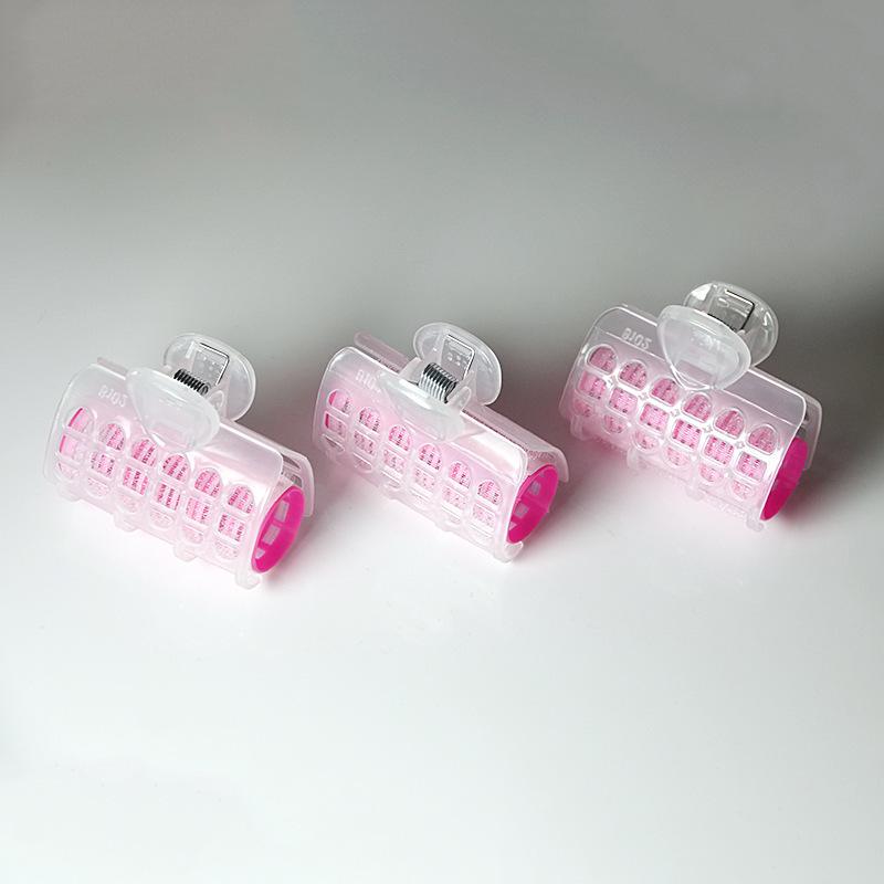 2. Cuando tu cabello esté medio mojado, toma una cantidad adecuada de cabello y enróllalo en el rizador. Ajústalo en la posición correcta y fíjalo.