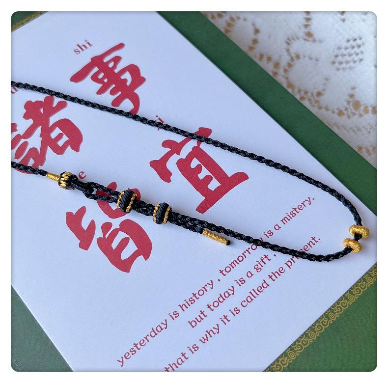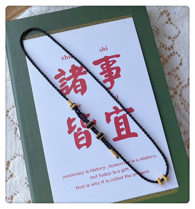 Collar Hecho a Mano Creativo DIY Cuerda Tejida Uso Directo Adornos Dorados Collar Ajustable Colgante Llavero para Bolso con Cierre para Hombre y Mujer