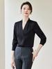 Camiseta de manga larga con botones de color liso de la estación europea, nueva moda de otoño 2024, estilo extranjero holgado, combinable con todo, para mujer