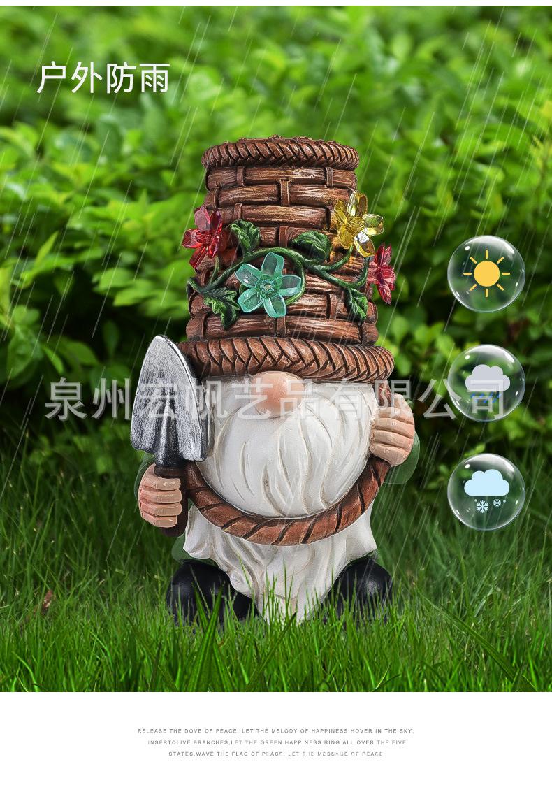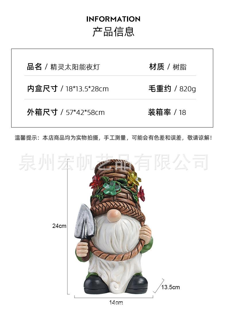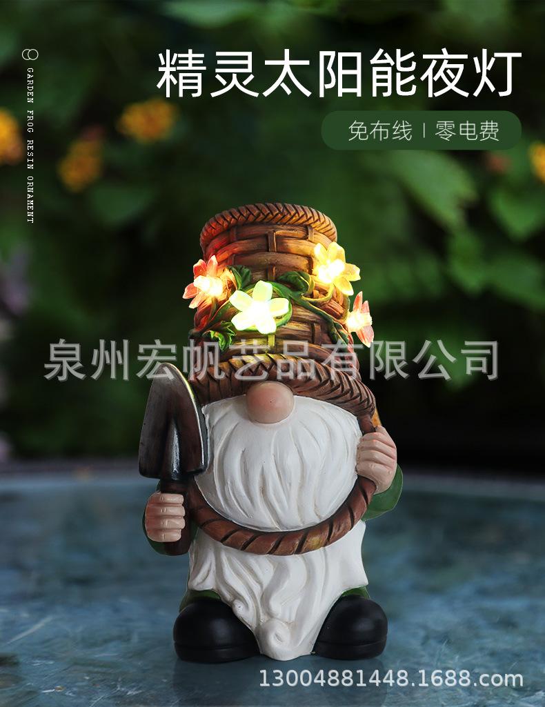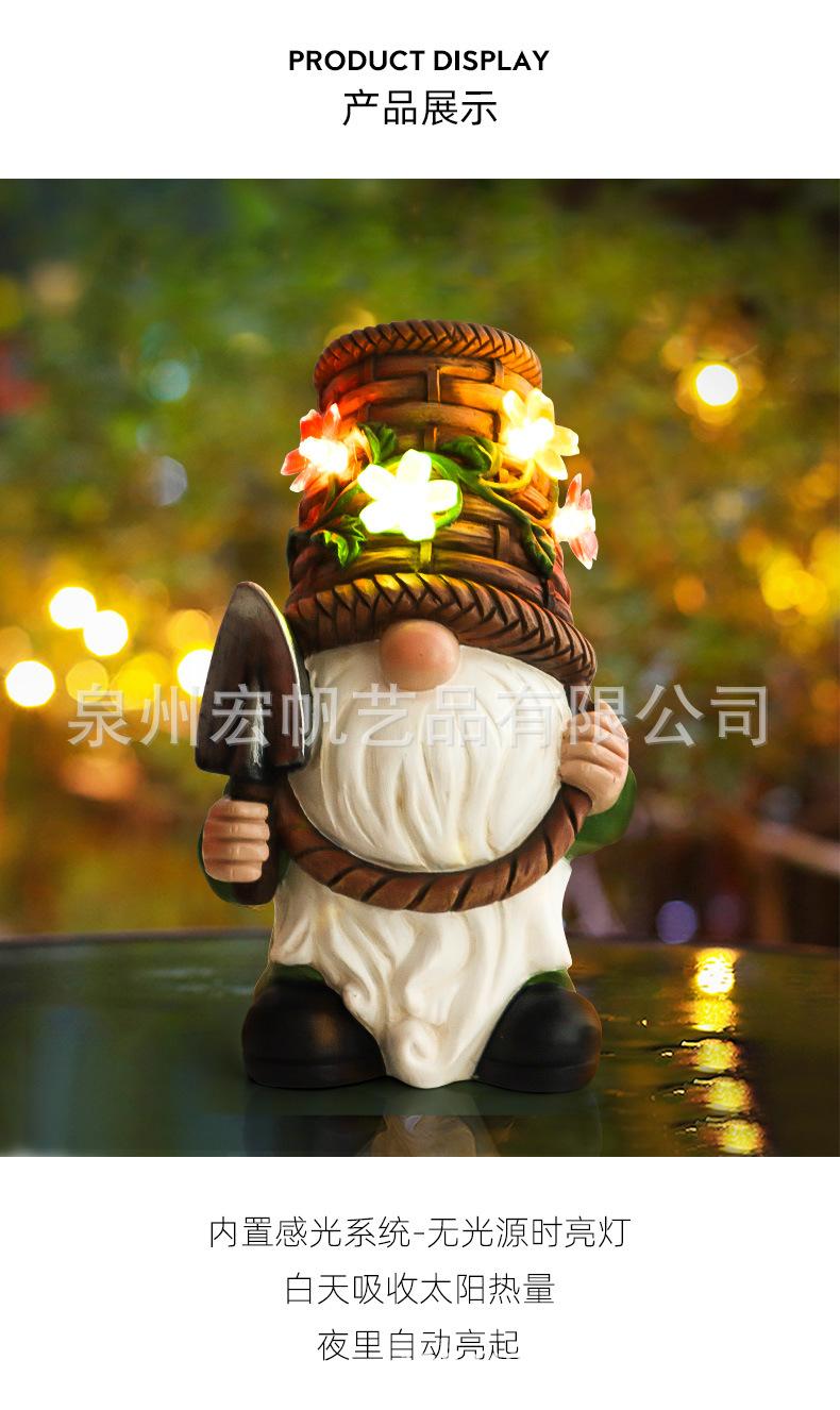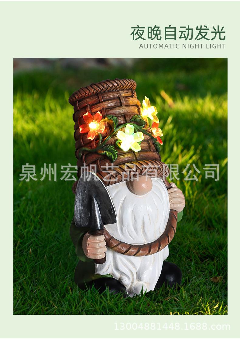 Adornos de elfo con pala sin rostro para jardín americano, luz solar nocturna, artesanía de resina decorativa para césped y jardín.
