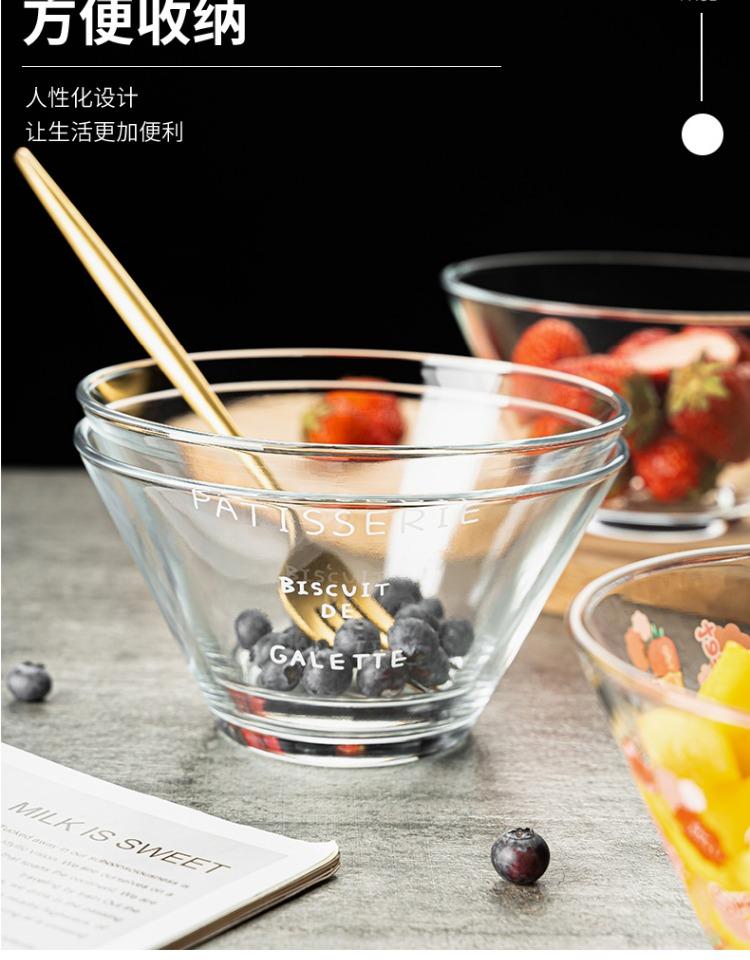 Cuenco japonés nuevo de vidrio transparente, cuenco para ensalada de frutas, cuenco para fideos instantáneos, cuenco para sopa doméstico, cuenco para arroz, apto para uso personal y dedicado para mujeres.