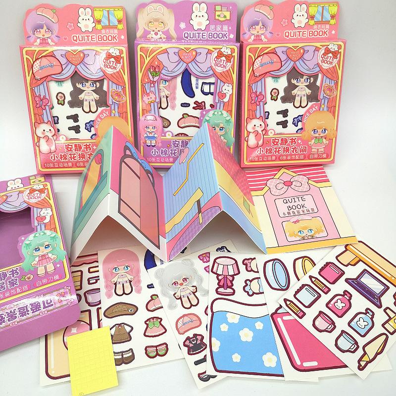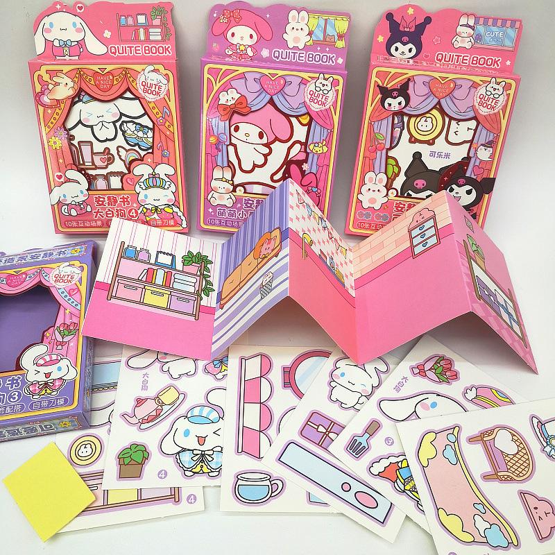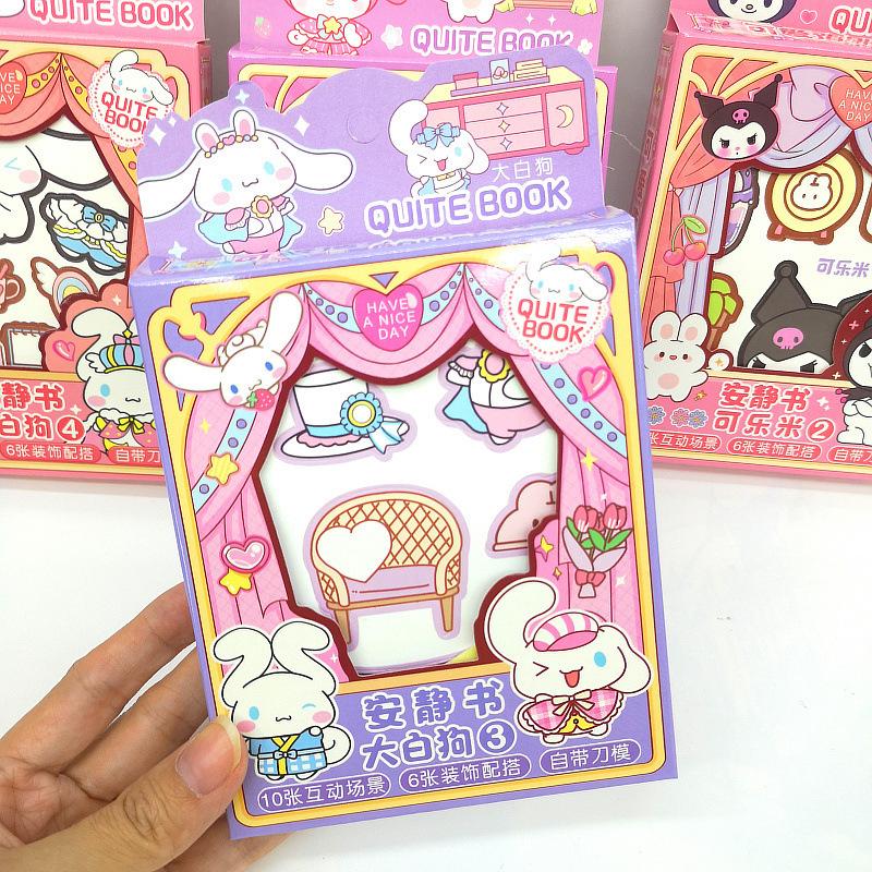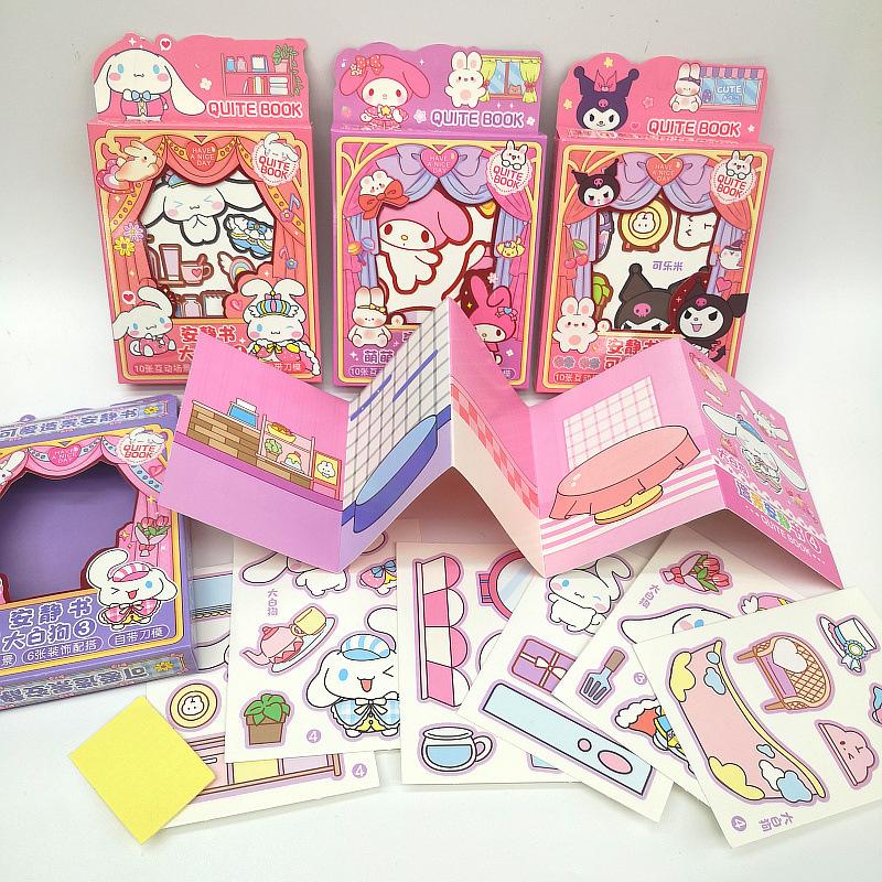Compra Libro silencioso de Sanrio con dibujos animados, bonito y creativo, libro de pegatinas silenciosas para niños y niñas, regalo hecho a mano al por mayor en Joom.pro