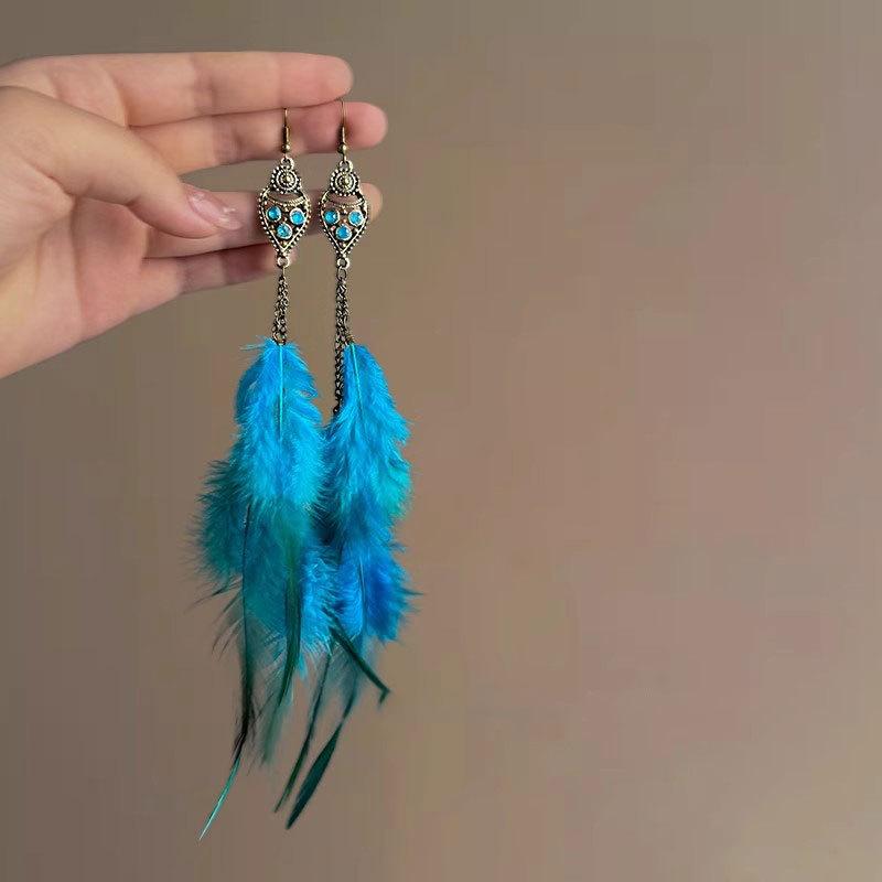 Ga4822 green feather ear hook, Ga4811 peacock blue feather ear hooks, Ga4812 white feather ear hook, Ga4820 red feather ear hook