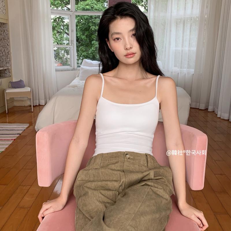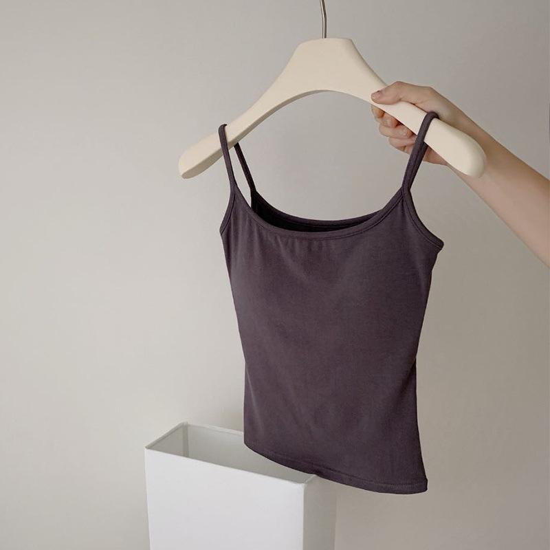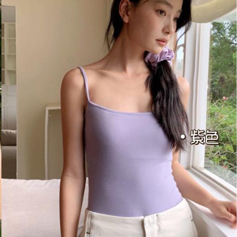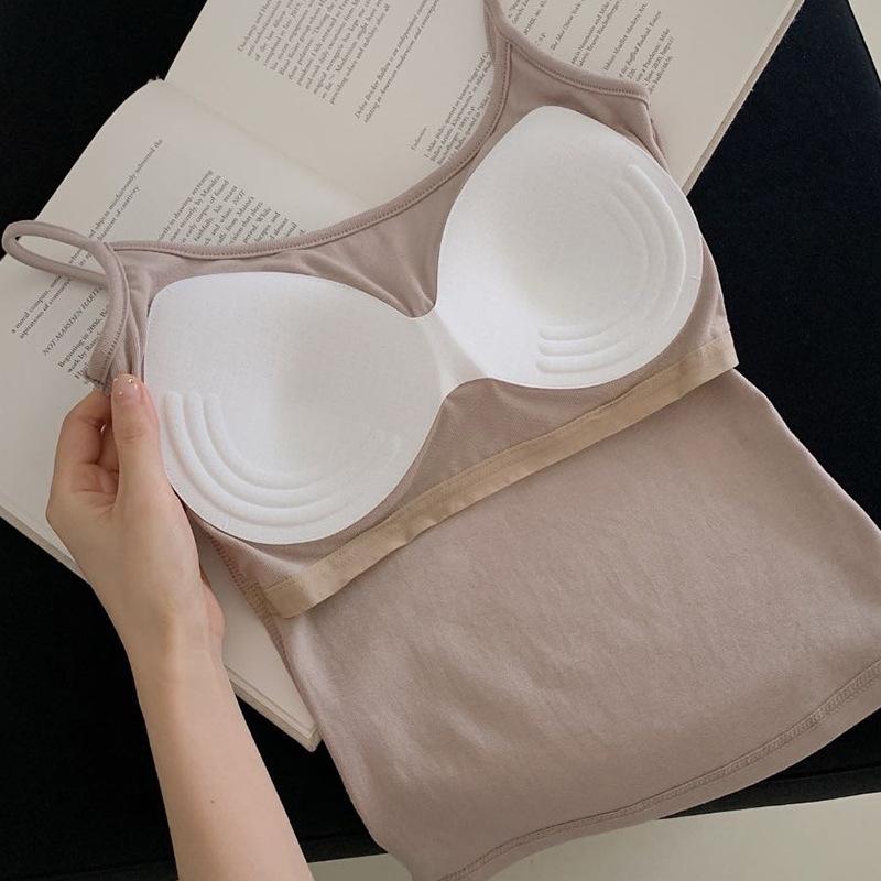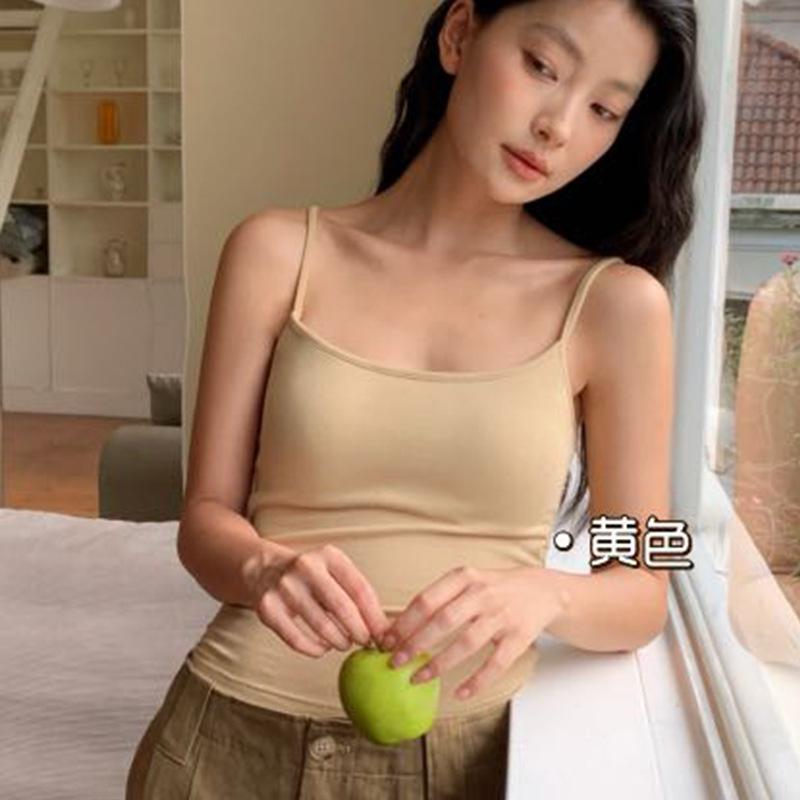 Camisola de color sólido para mujer, con cinturón y almohadilla para el pecho, copa integrada, ropa interior sin desgaste, base interior adelgazante, ropa exterior pequeña.