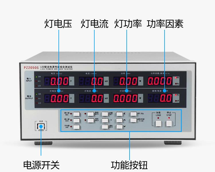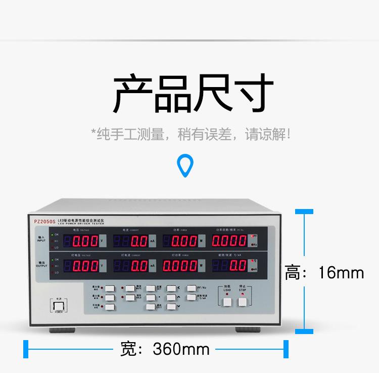 Huazhike PZ2050S, instrumento de medición integral del rendimiento de la unidad de potencia LED de alta precisión con alarma de límite superior e inferior