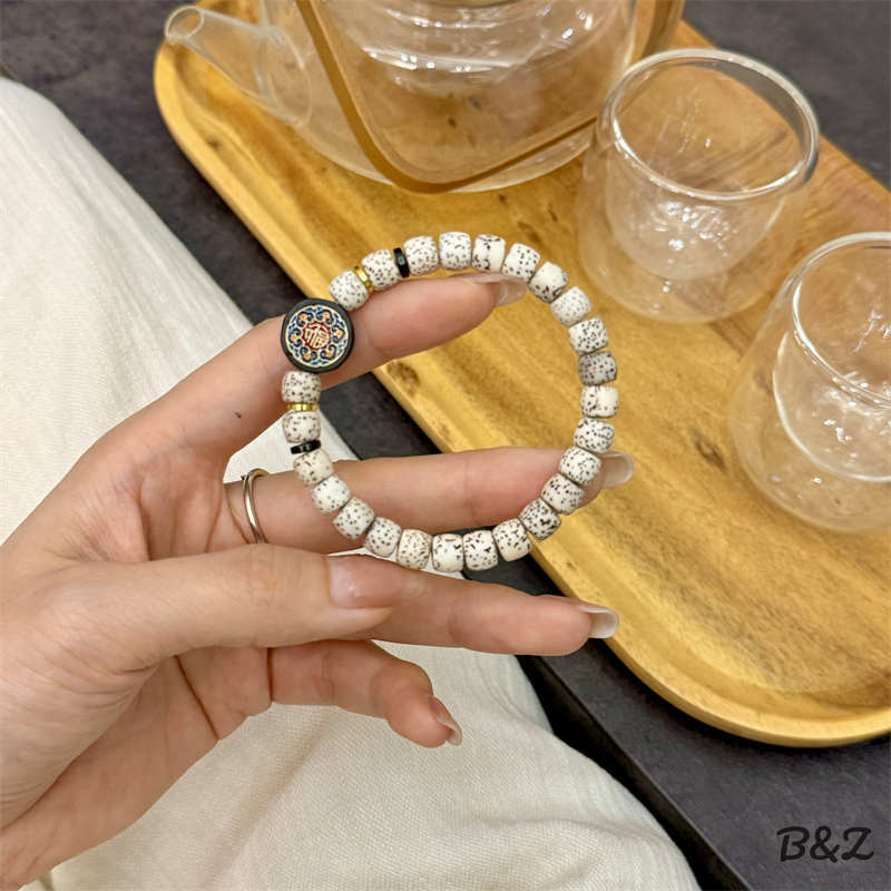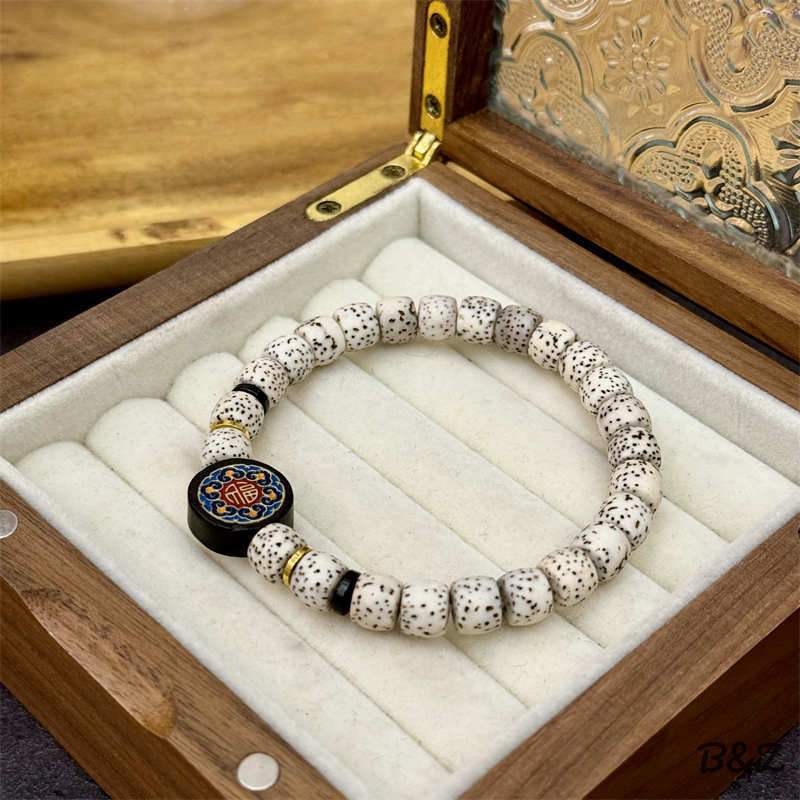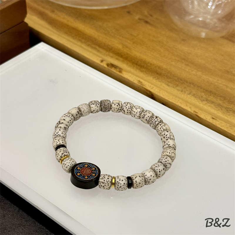 Pulsera de diseño original con diseño de estrella, luna, bodhi, corte recto de 6 x 8 mm con placa de la suerte de aceite de gota de ébano, pulsera con texto de juego al por mayor