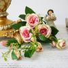 Decoración de Boda en Casa Arreglo Floral Rosa Artificial Pastoral Ramo de Capullos Pequeños y Frescos Flor Falsa de Plástico Adornos para Sala de Estar