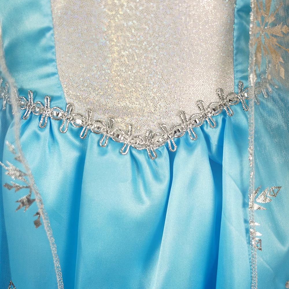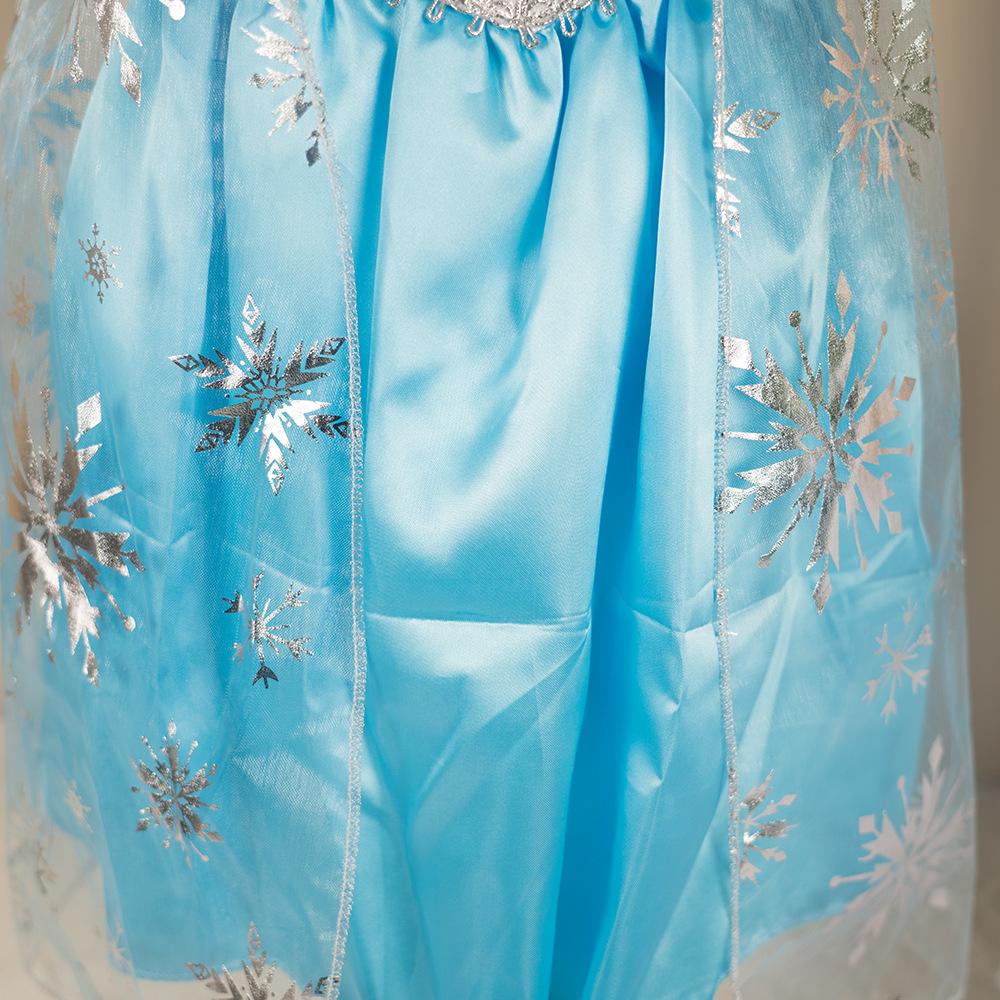 2022 Nuevo vestido de princesa Elsa de Frozen, vestido de malla de manga larga con estampado de hielo y nieve, capa, diadema, vestido para niños