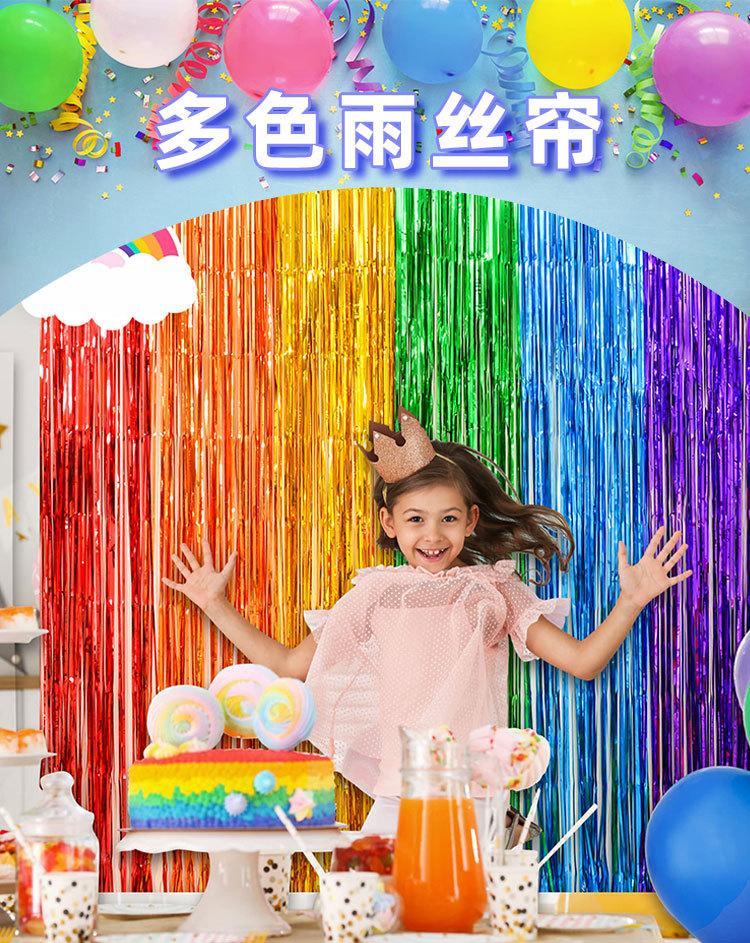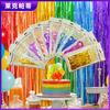 Cortina de seda con forma de lluvia para fiestas, bodas, cumpleaños, arreglos, suministros para decoración de fiestas, fondo con borlas de colores y borde cruzado.