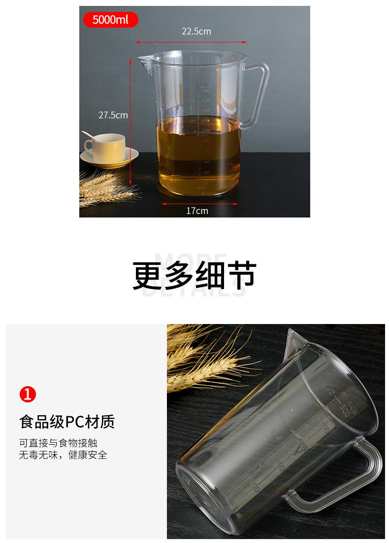 Taza medidora de plástico PC de personalidad de gran capacidad especial para tienda de té con leche 2000/3000ml5000ml con escala taza gramo