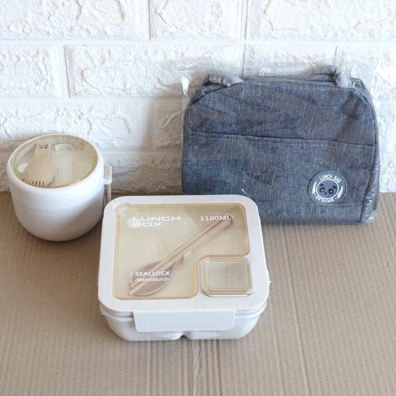 Yajiali 1.2L Fiambrera de Plástico Dividida de Doble Capa + Bolsa Aislada