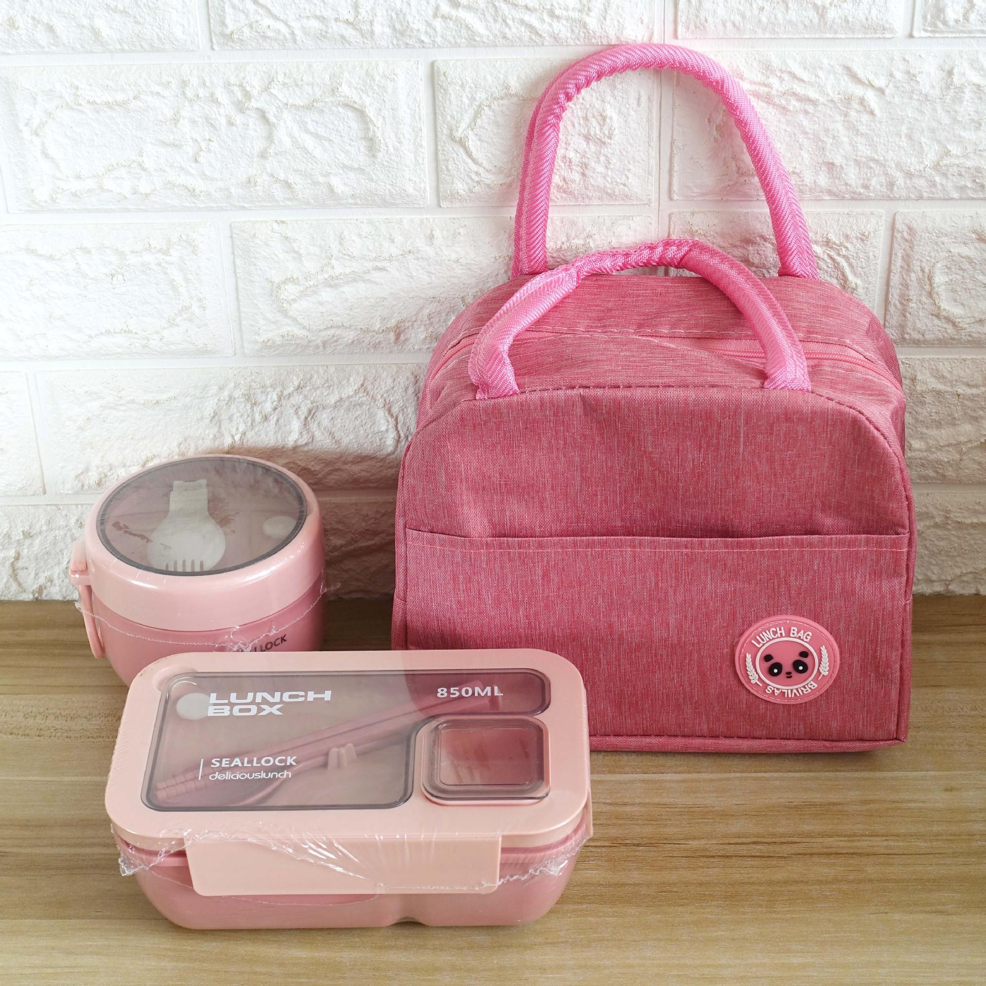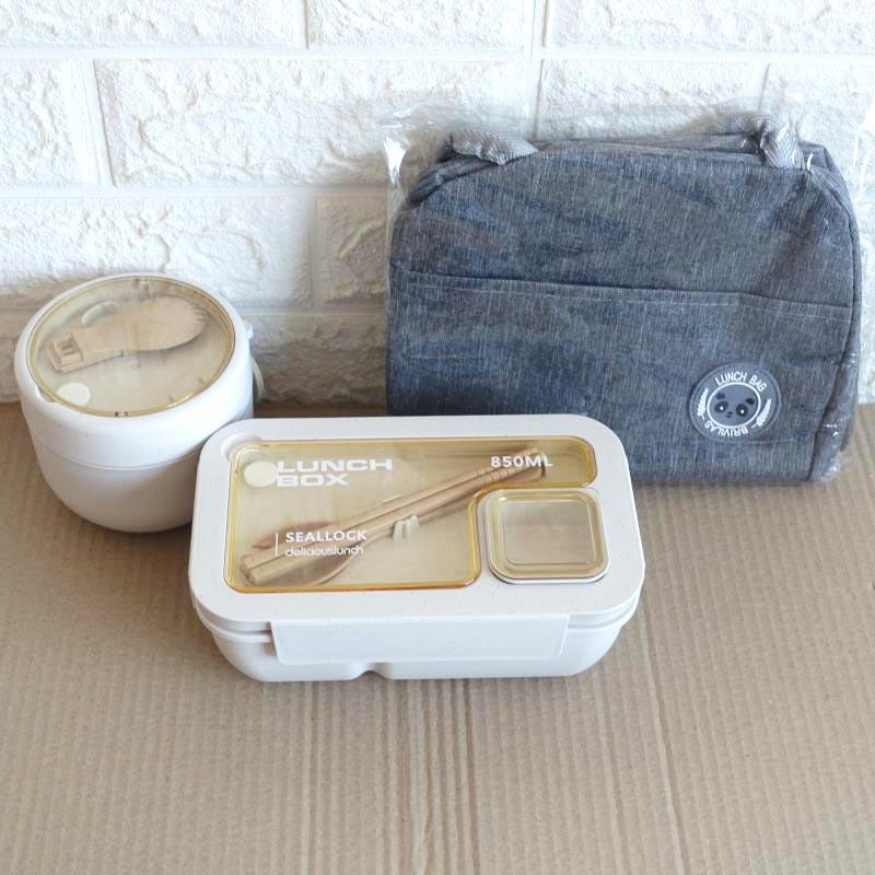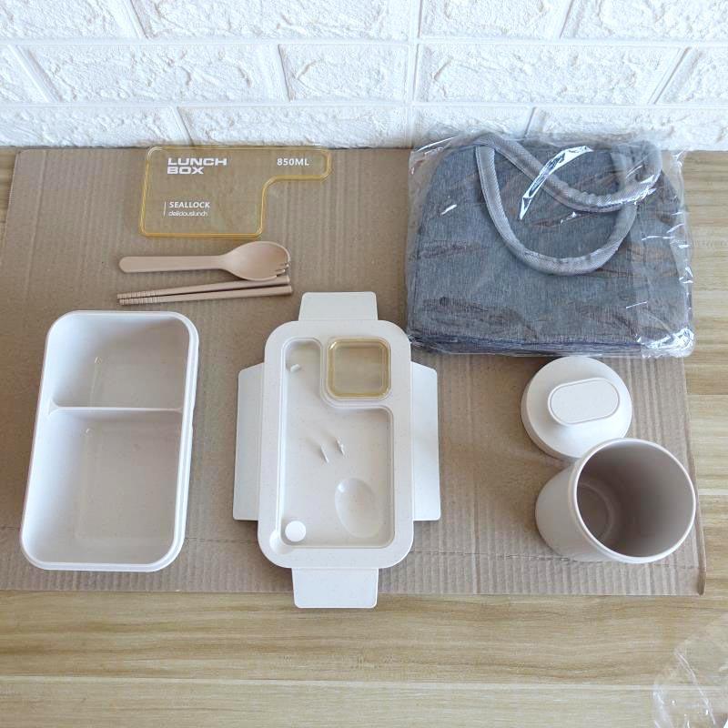 Fiambrera rectangular Yajiali de 19,5 x 11,9 x 7,9 cm, con vaso de agua de 850 ml y bolsa de 600 ml de 11 x 11 x 9,3 cm.