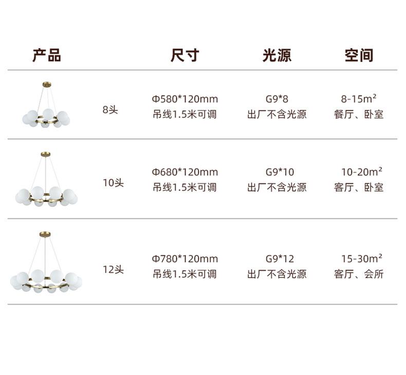 8-head electroplated copper color-pvc lampshade (g9 lamp holder) does not include light source)