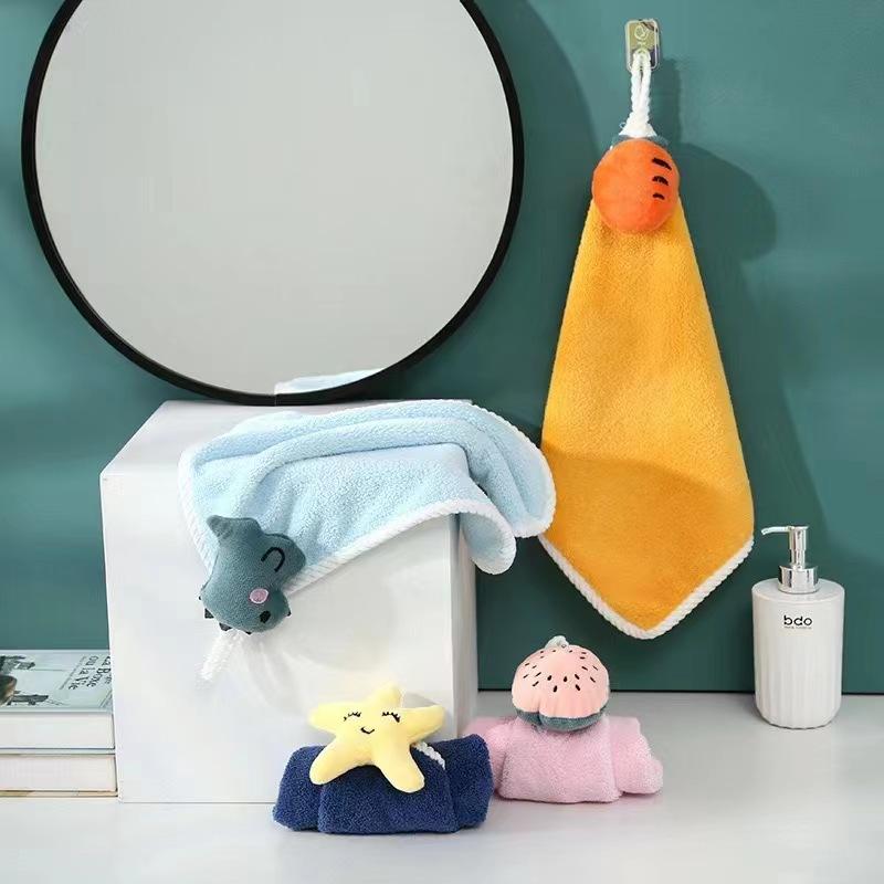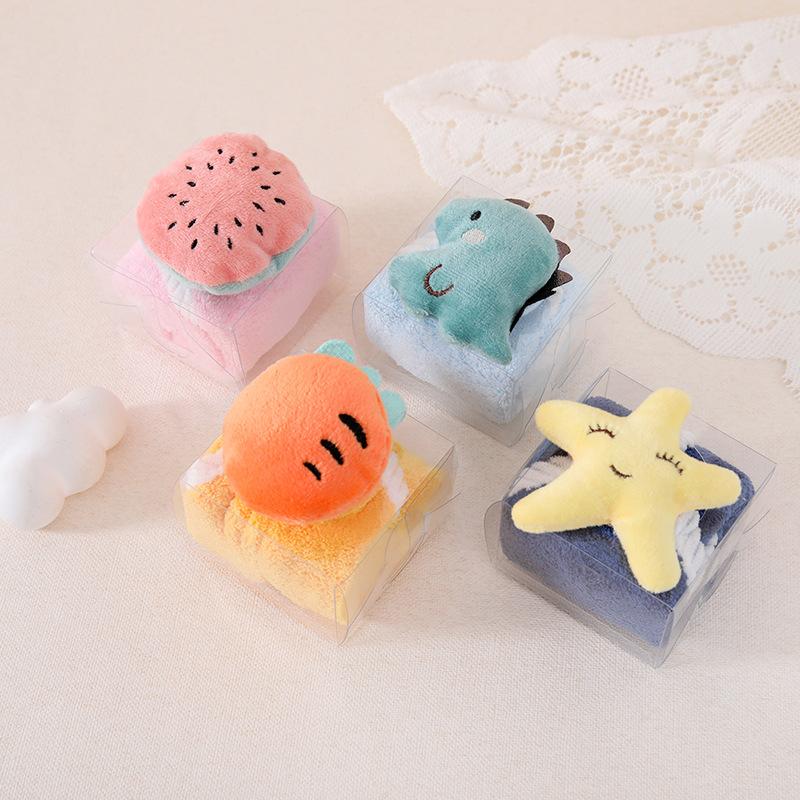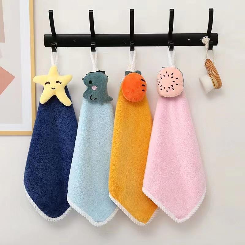 Toalla de mano de dibujos animados para niños, linda toalla colgante, suave, absorbente, de terciopelo coral, cuadrada, caja de regalo para jardín de infantes