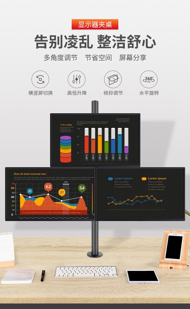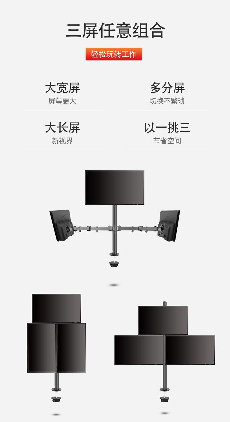 Ruisimeijia soporte para monitor de computadora LCD de tres pantallas altas base de pantalla perforada soporte de escritorio para computadora