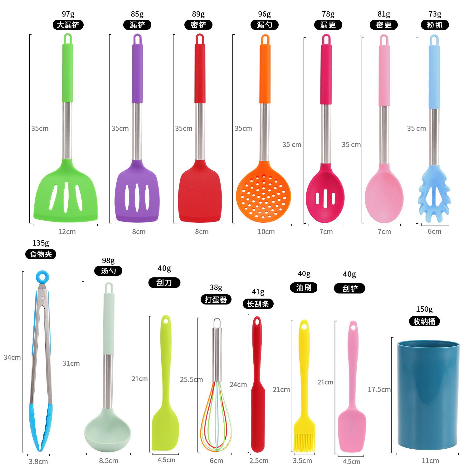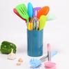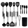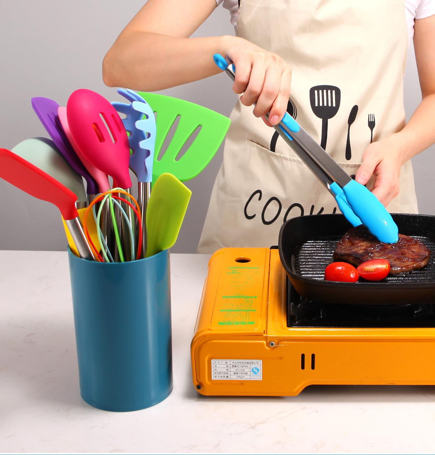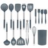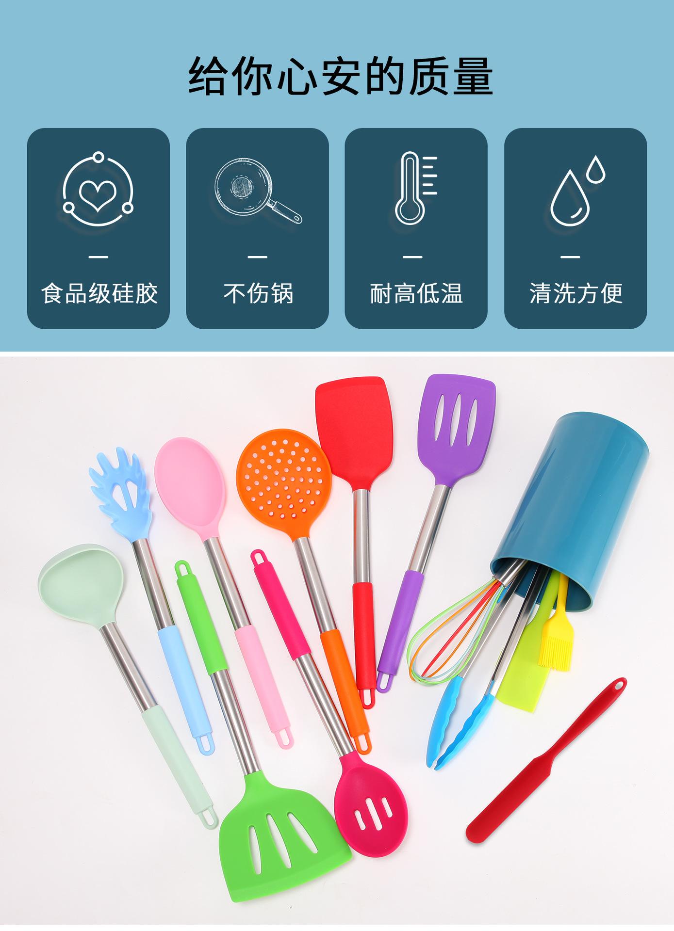 Juego de mango de silicona de Amazon transfronterizo, cubo de almacenamiento de utensilios de cocina de silicona con mango de tubo de acero inoxidable, 15 piezas, juego de utensilios de cocina