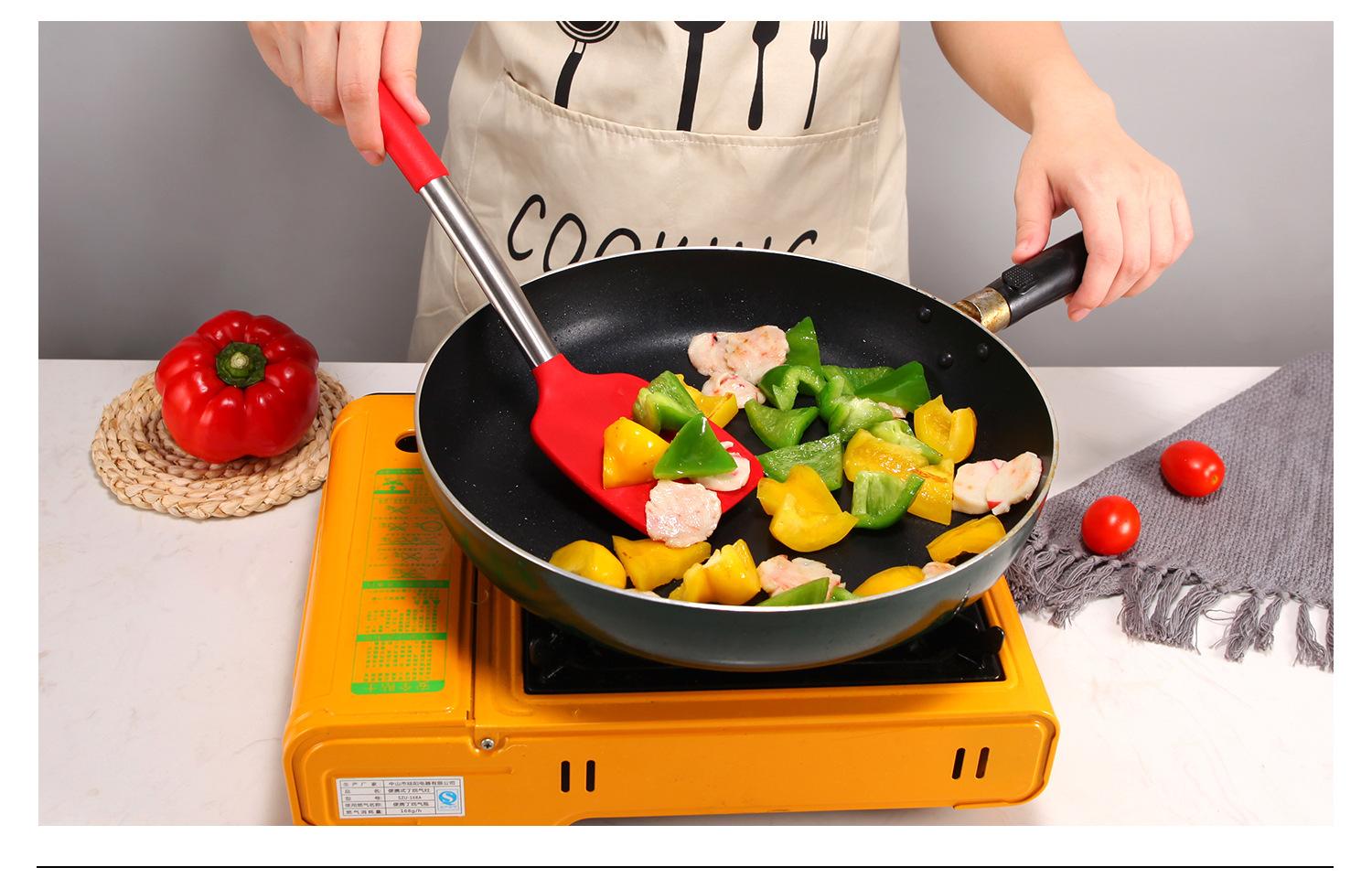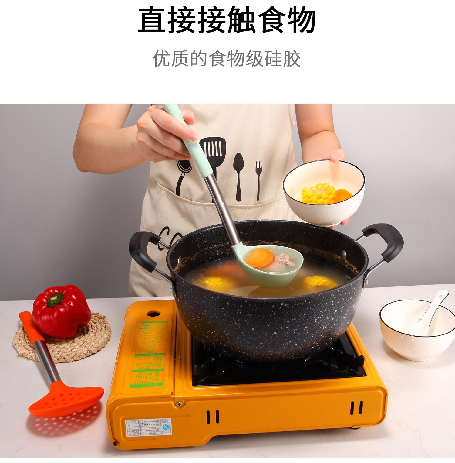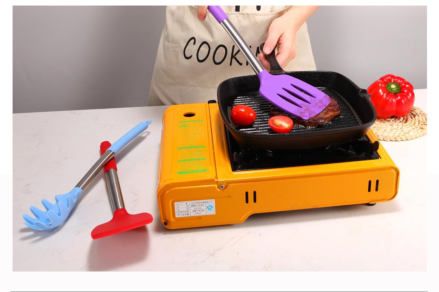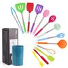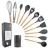 Juego de mango de silicona de Amazon transfronterizo, cubo de almacenamiento de utensilios de cocina de silicona con mango de tubo de acero inoxidable, 15 piezas, juego de utensilios de cocina