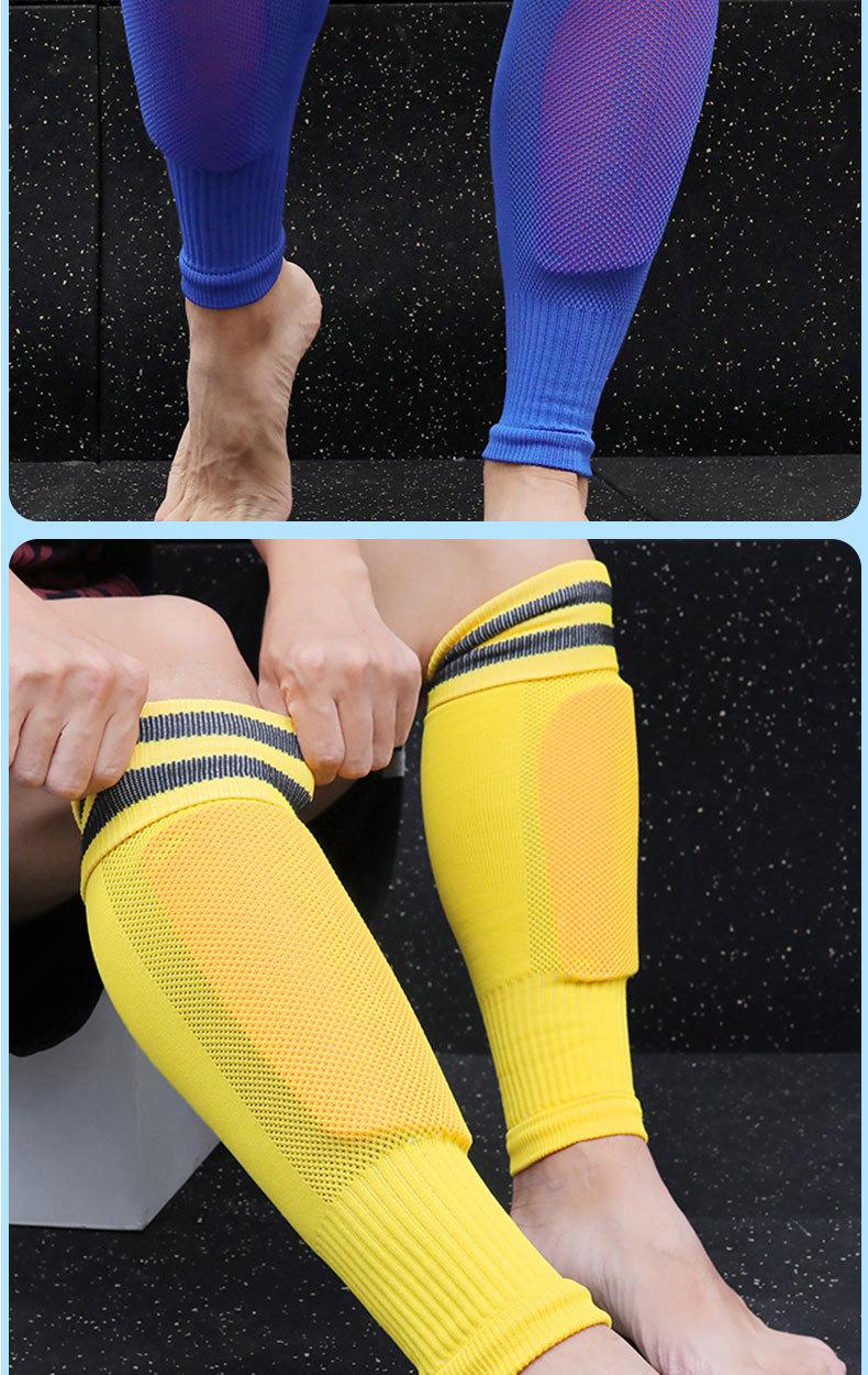 Calcetines de Fútbol Hasta la Rodilla Rayados Equipo de Entrenamiento Deportivo Bolsillo con Solapa Plegable Pantalones Espinilleras Fijas Mangas Elásticas Transpirables