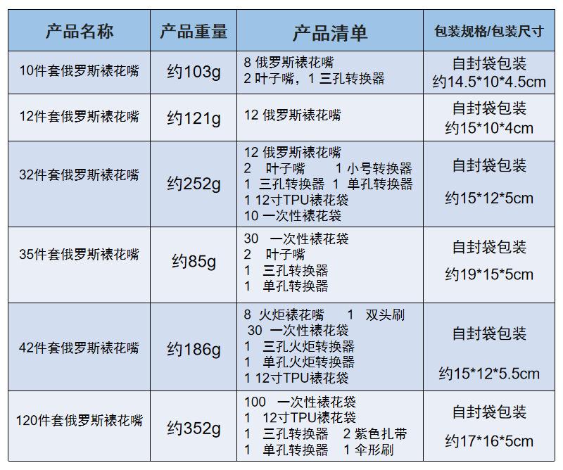 10-piece set of russian decorating tips type a, 32 pieces of russian decorative tips type a, 42-piece set of r...