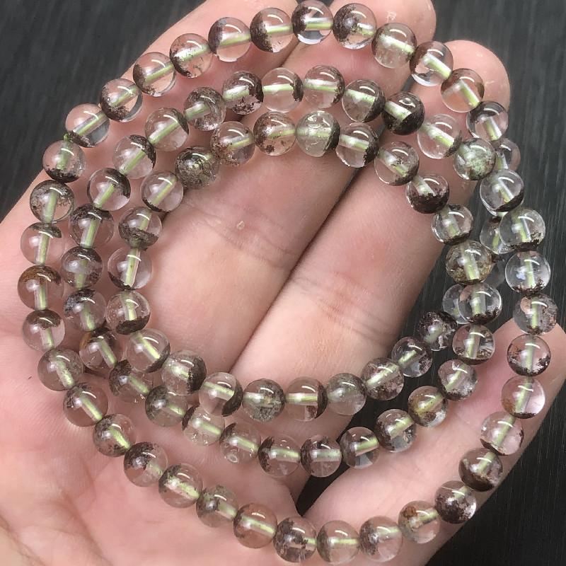 Pulsera de Cornucopia Transparente de Fantasma Verde Natural de Tres Círculos Pulsera de Tres Capas Fabricante Mayorista de Joyería de Cristal de la Suerte