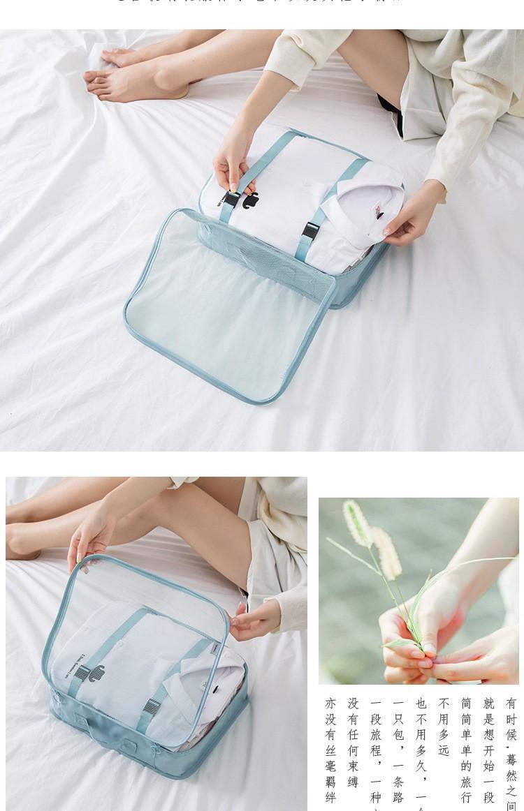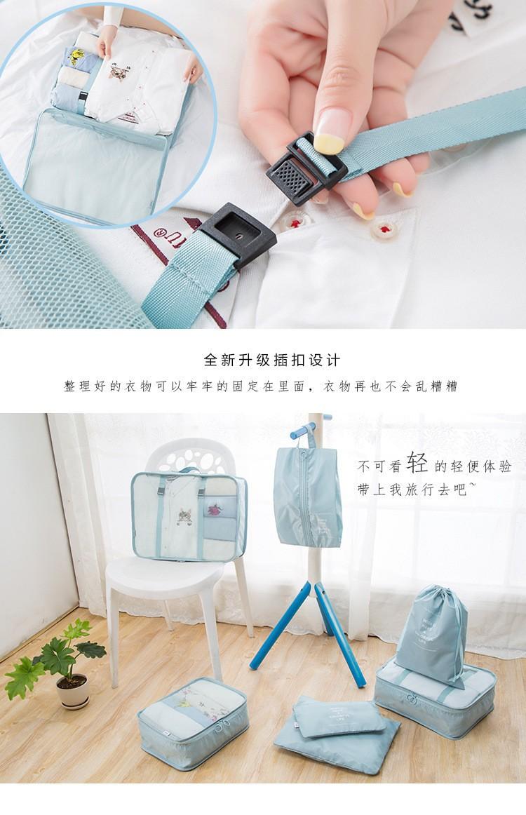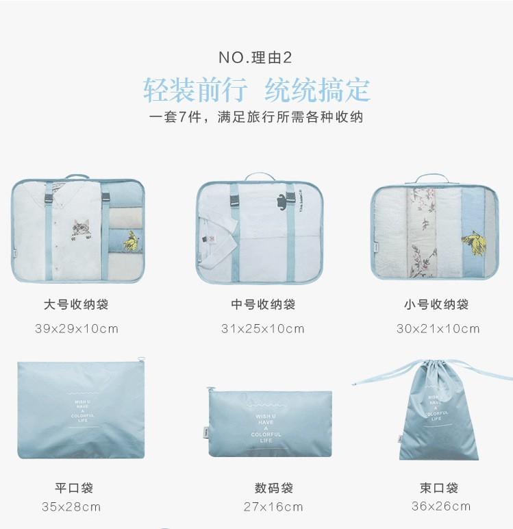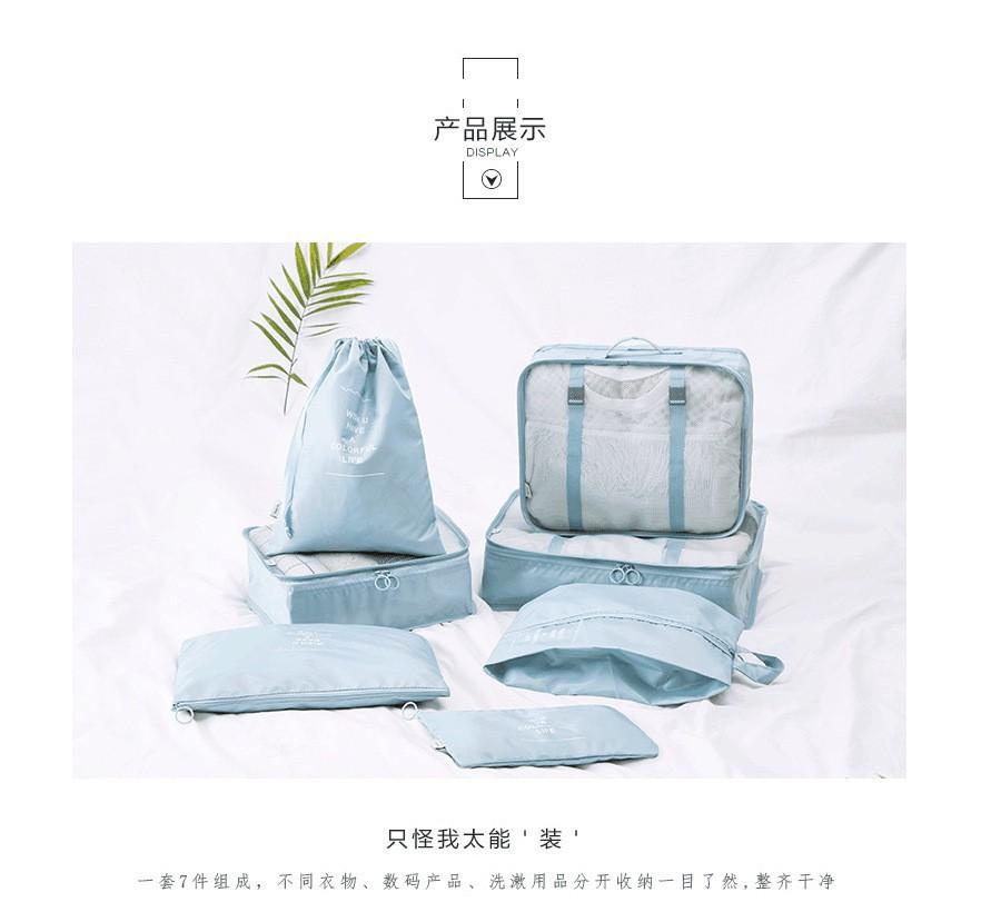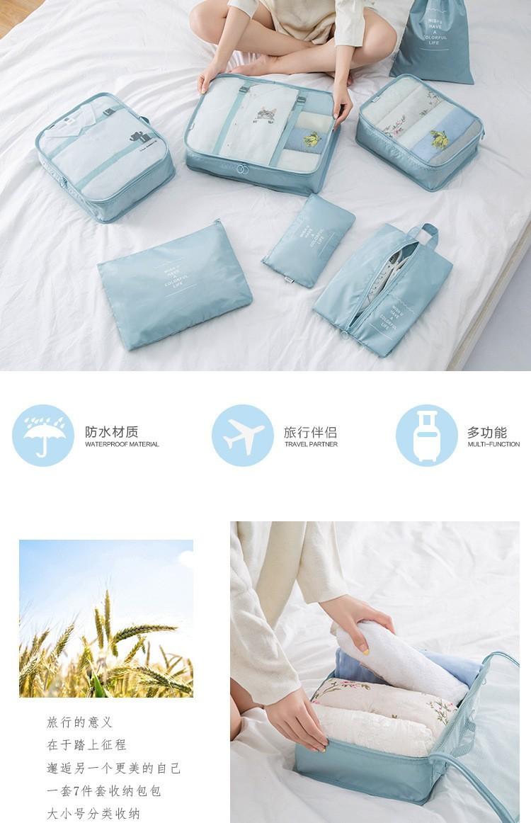 Sky blue travel storage bag seven-piece set (upgraded model), Gray twill seven-piece set, Beige travel storage...