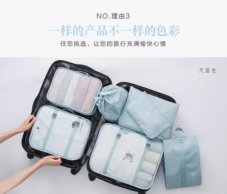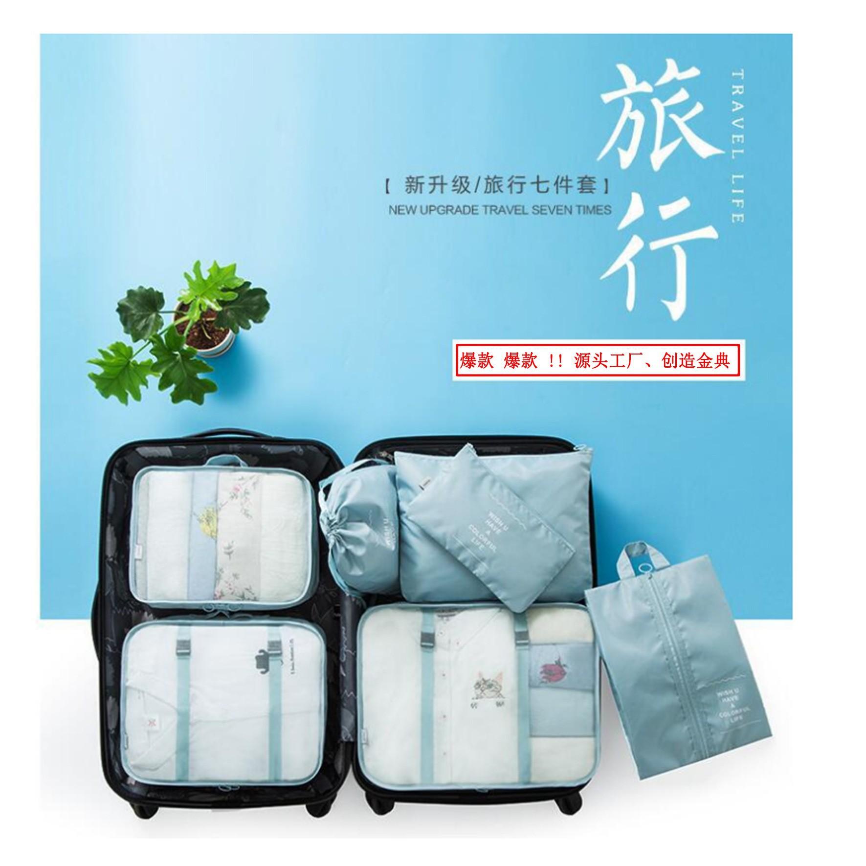 Bolsa de almacenamiento de viaje, conjunto de siete piezas, gran capacidad, equipaje de viaje, ropa, bolsa de almacenamiento, conjunto de venta directa de fábrica