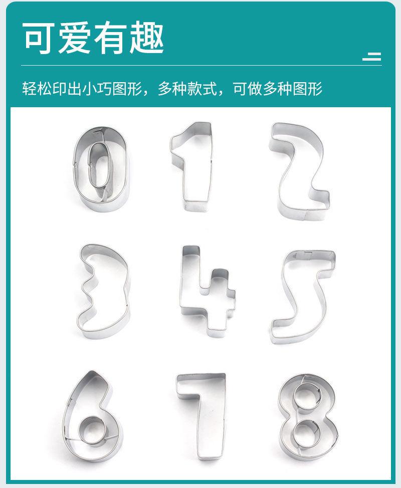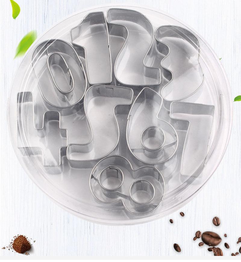 Juego de 9 moldes digitales para galletas, de acero inoxidable, para decorar tartas, con relieve de azúcar, herramientas para hornear.