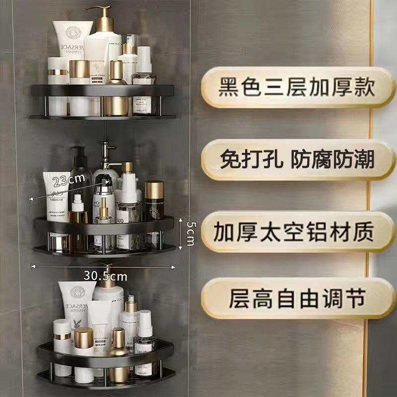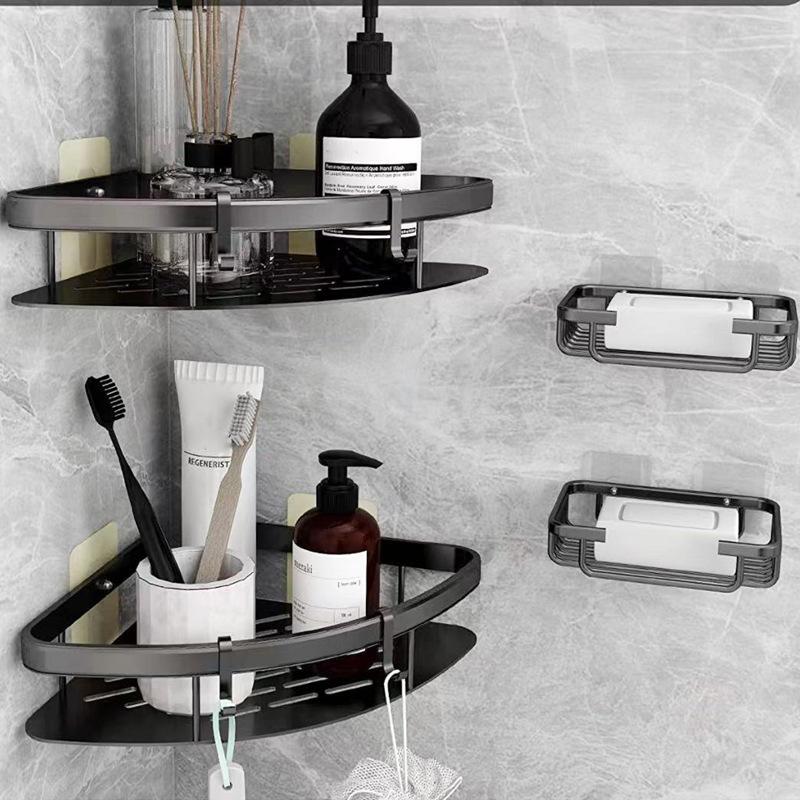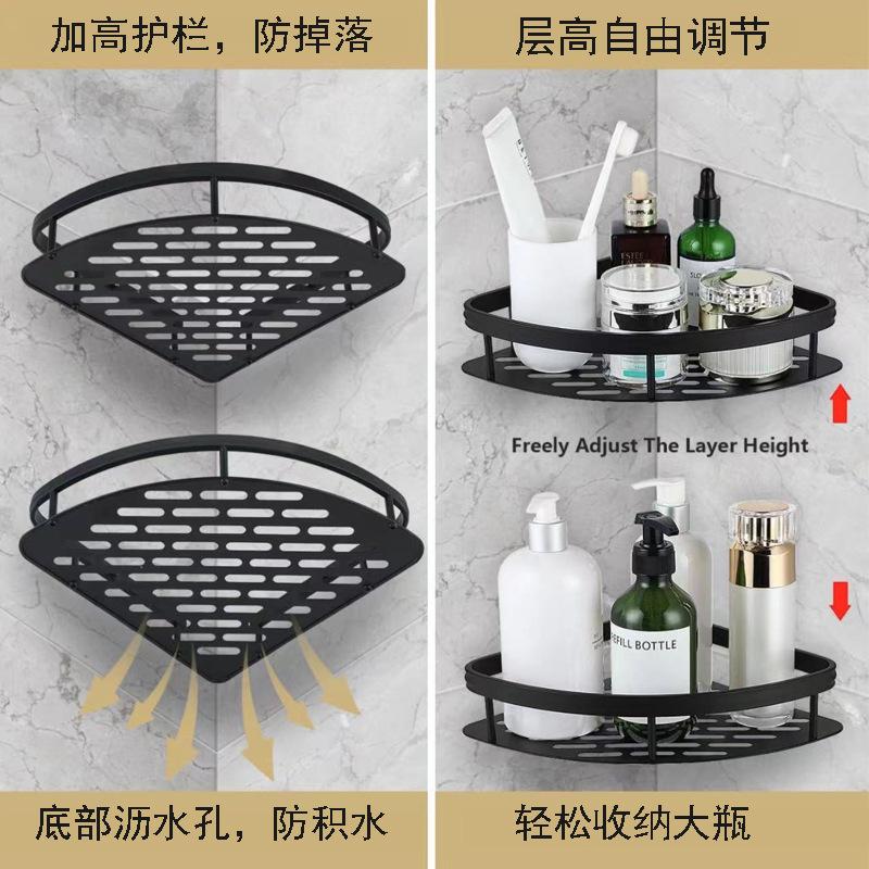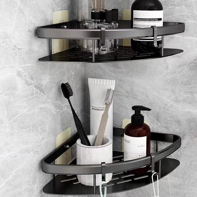 Estante de almacenamiento de baño de aluminio espacial, estante triangular para baño, estante de almacenamiento de esquina para colgar en la pared sin perforaciones para inodoro