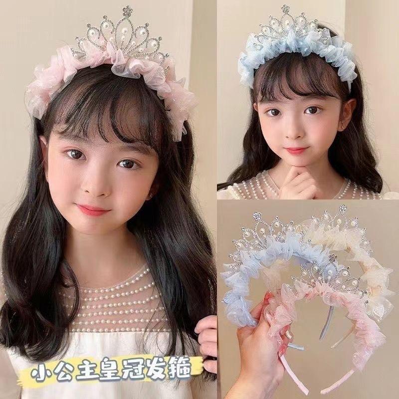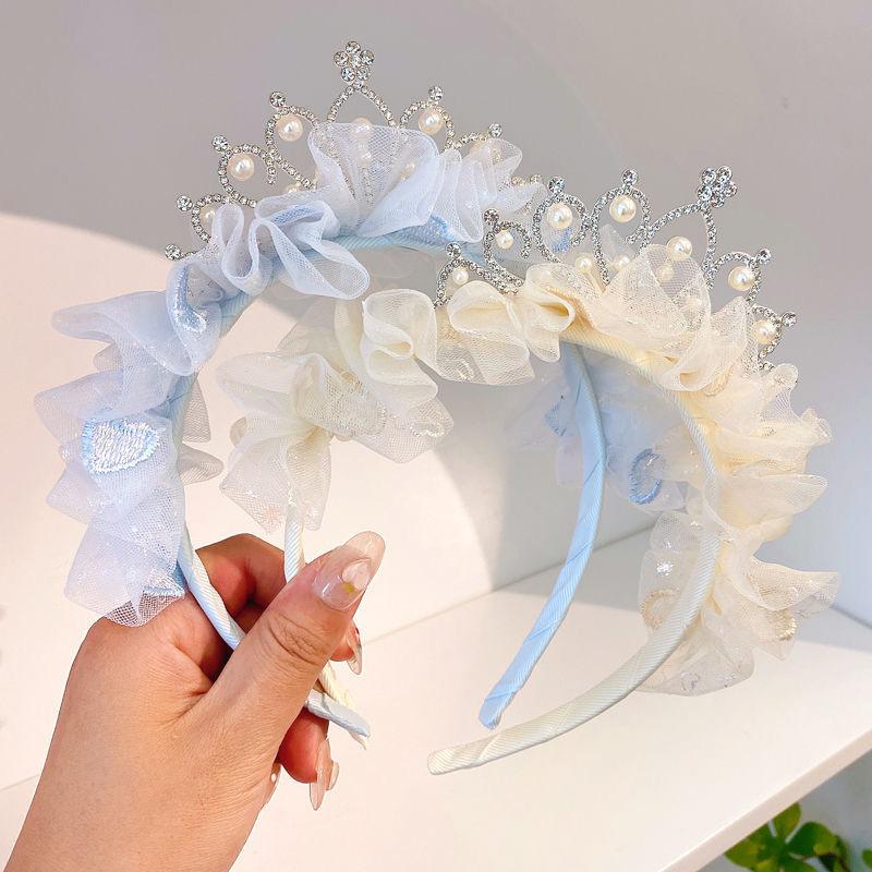 Diadema de hada súper corona para niños, diadema de velo de cumpleaños para bebé, dulce y linda tarjeta para el cabello para mujer, tocado de princesa Hanfu