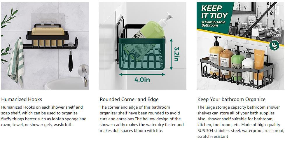 Soap Rack, Toothbrush holder, Medium bathroom rack (with adhesive sticker), Large bathroom rack (with adhesive...
