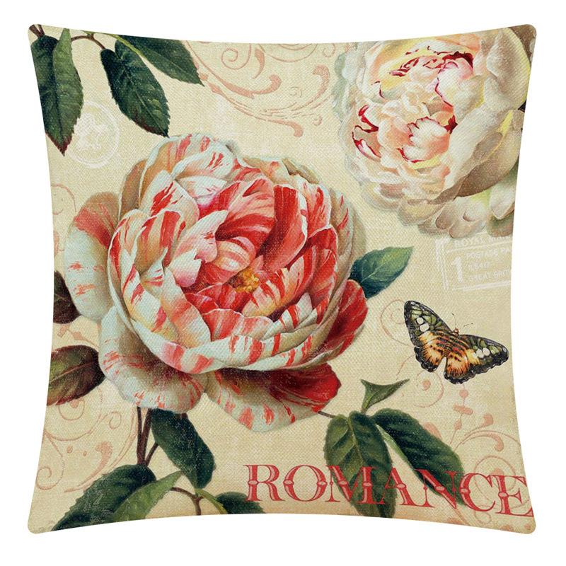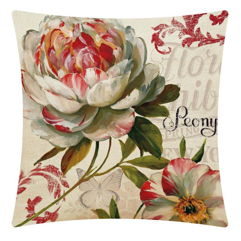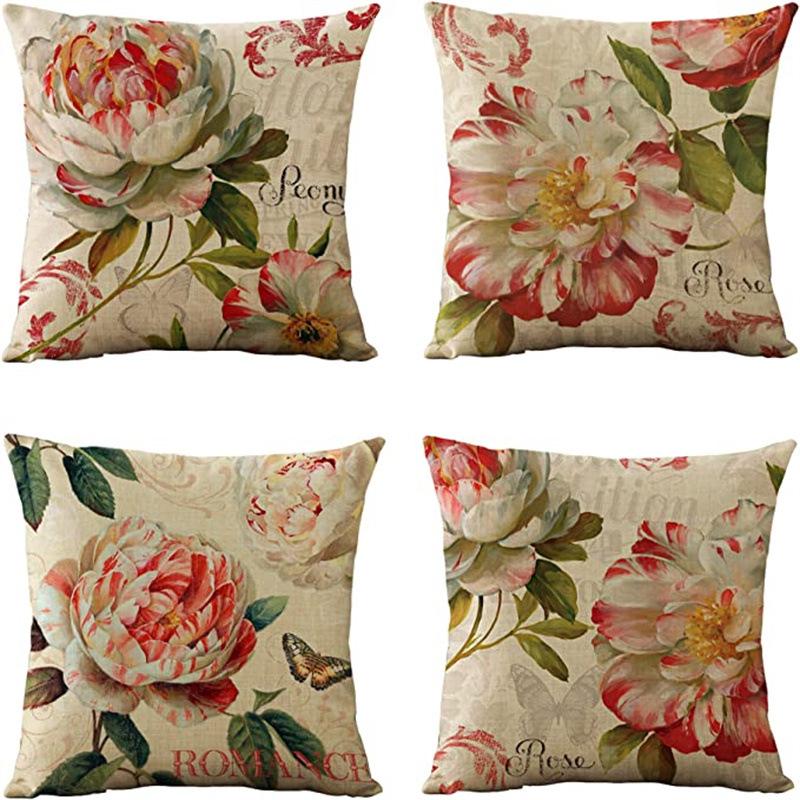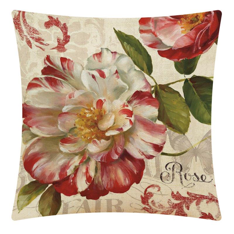 Compra Funda de cojín decorativa con diseño de flores rojas retro de Amazon, funda de cojín de lino para coche, cojín para sofá al por mayor en Joom.pro