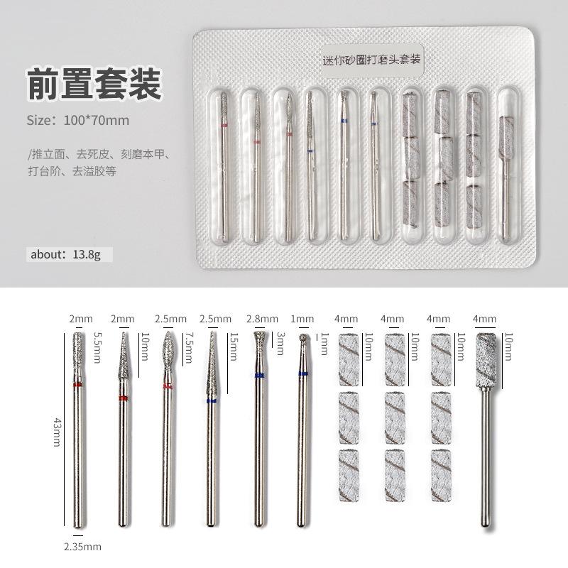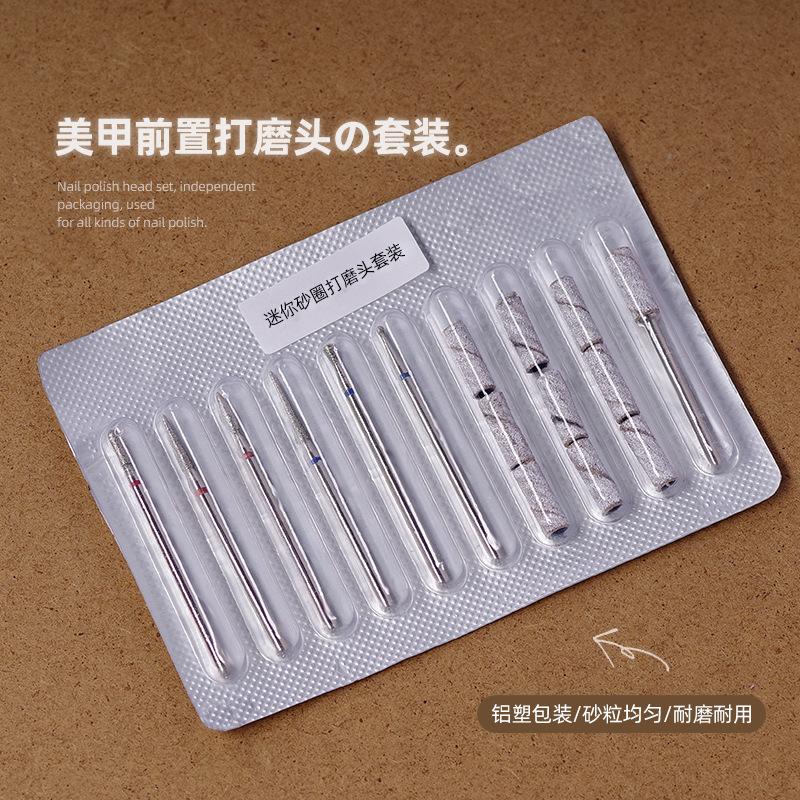 Juego de cabezales de pulido frontal para manicura, mini anillo de arena, grabado y pulido de uñas, pasos para eliminar la piel muerta, embalaje de plástico de aluminio