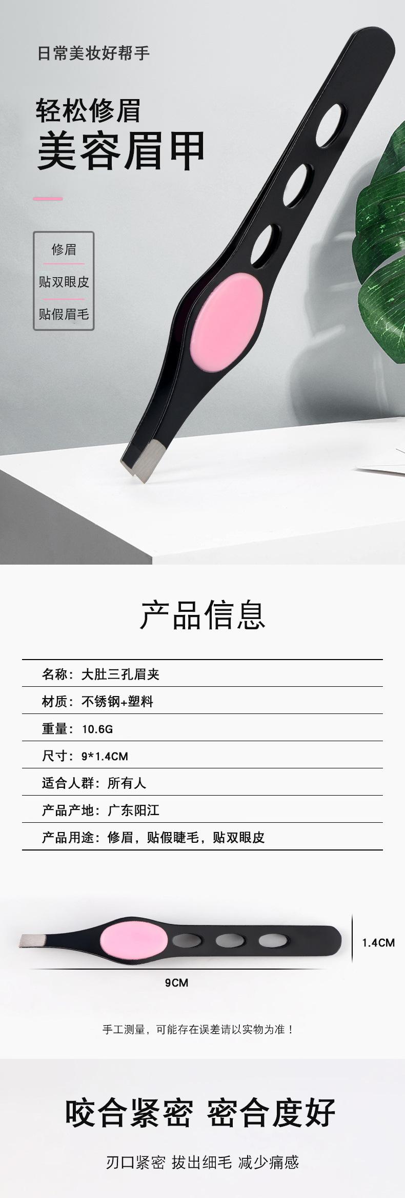Fabricantes de pinzas para cejas de acero inoxidable de tres orificios, pinzas para depilar y recortar cejas oblicuas con almohadilla de goma, pinzas para cejas al por mayor