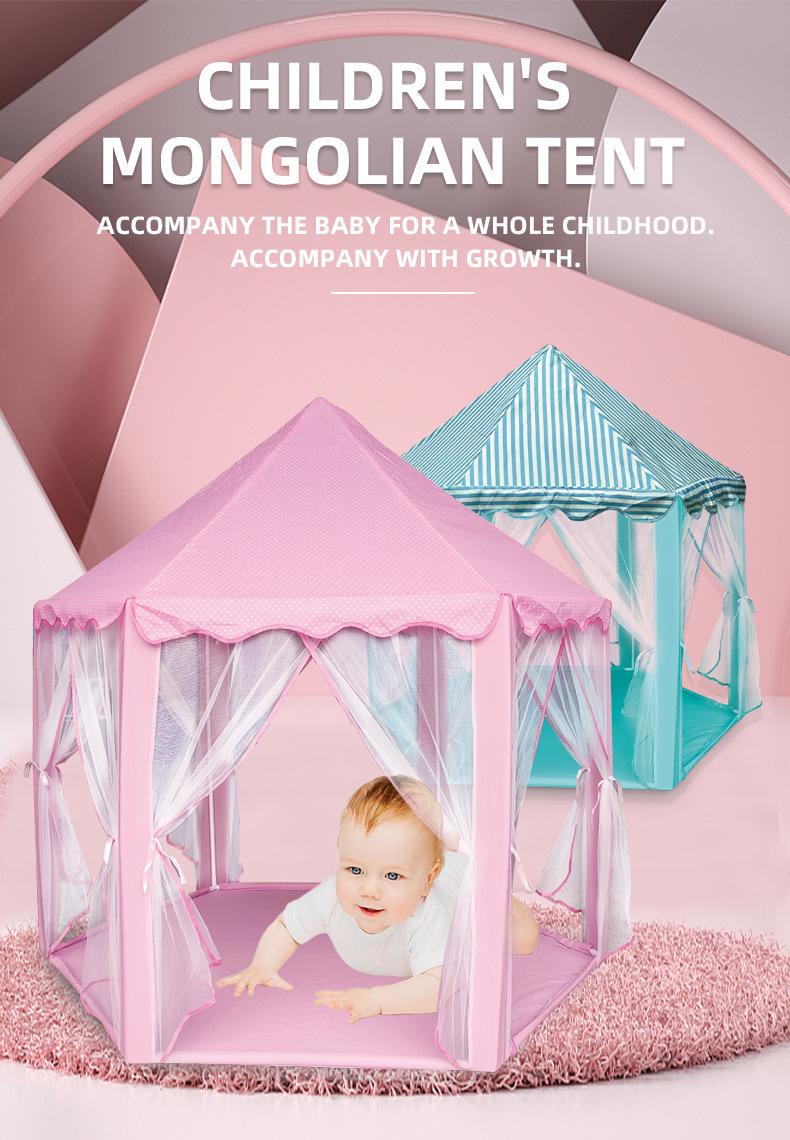 Tienda de campaña para niños, casa de juegos de interior con forma hexagonal de tul para bebés, ideal para hombres y mujeres, con castillo de princesas y juguetes.