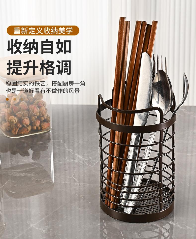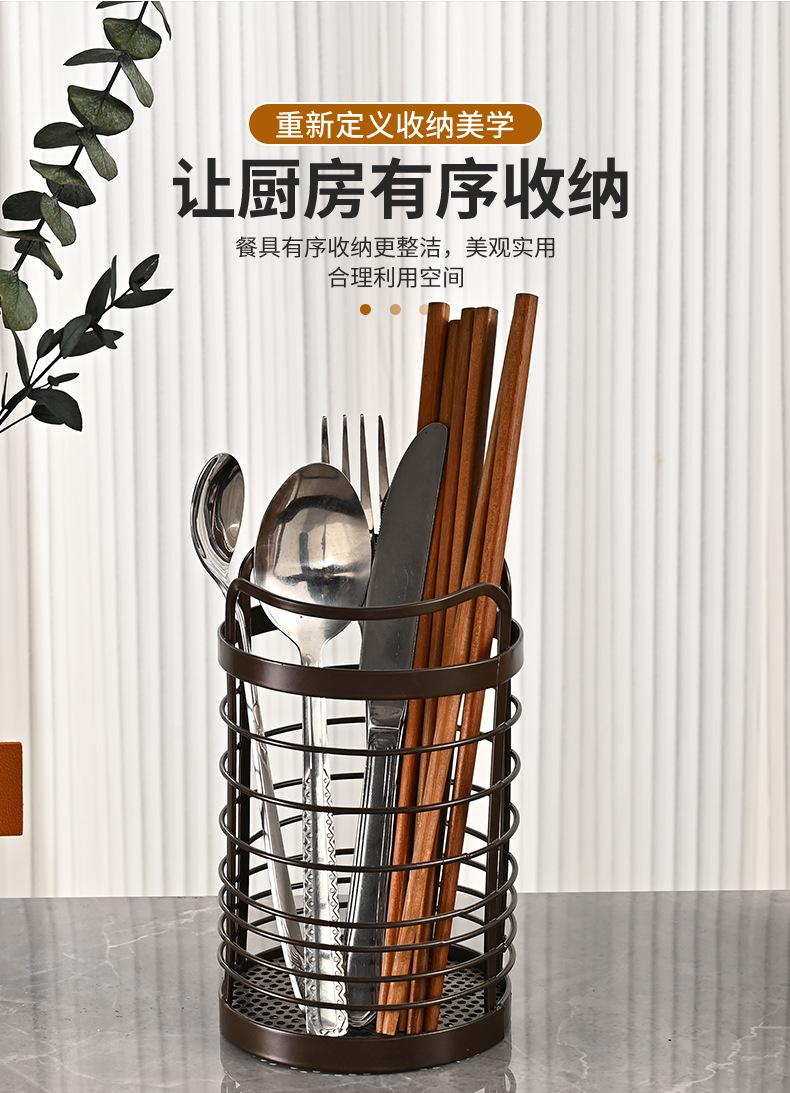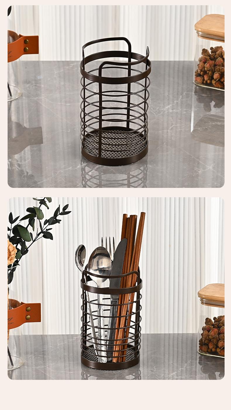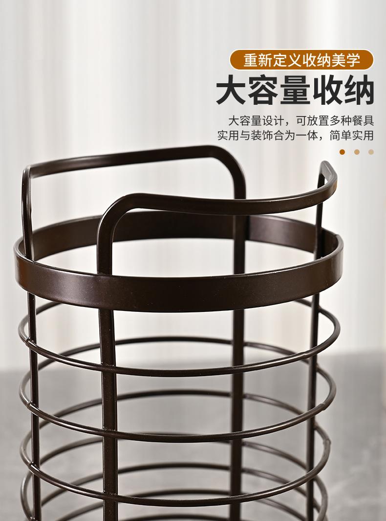 Barril Redondo de Bronce para Palillos Venta al Por Mayor de Fábrica para el Hogar Hierro Escurridor para Cuchillos y Tenedores Estante de Almacenamiento para Vajilla de Cocina