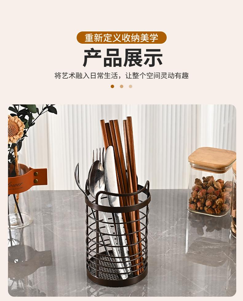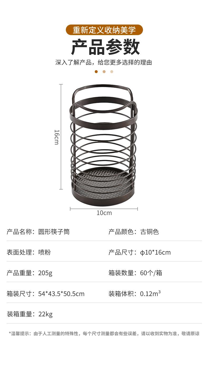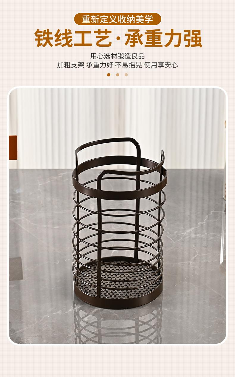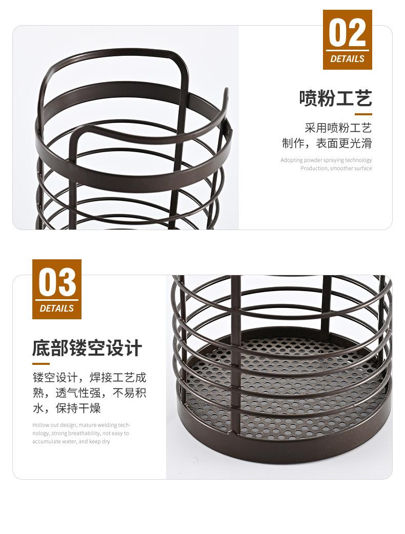Barril Redondo de Bronce para Palillos Venta al Por Mayor de Fábrica para el Hogar Hierro Escurridor para Cuchillos y Tenedores Estante de Almacenamiento para Vajilla de Cocina