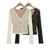 Camisa sexy de encaje de manga larga con cuello en V para mujer de principios de otoño, top corto ajustado y sexy para chica 5395