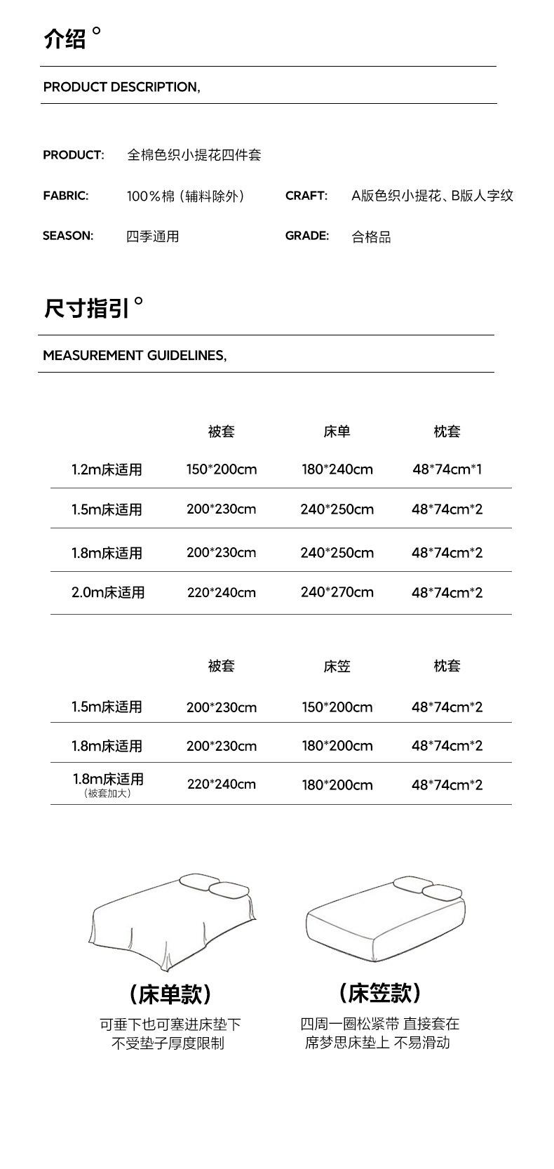 1.2m bed sheet three-piece set, 1.5m bed sheet four-piece set, 1.8m bed sheet four-piece set, 2.0m bed sheet f...